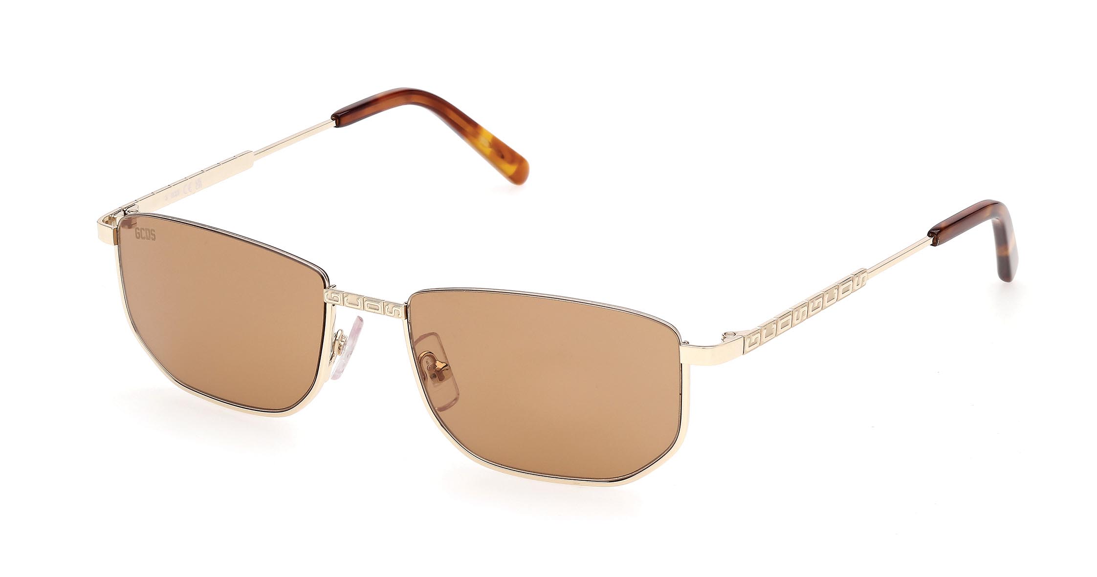 Nuovo ruolo anche per il Logo Chain GCDS: la barra in metallo con il lettering del brand in rilievo è applicata sulle aste o lungo i lati del frontale per aggiungere un accento jewelry dal carattere urbano.