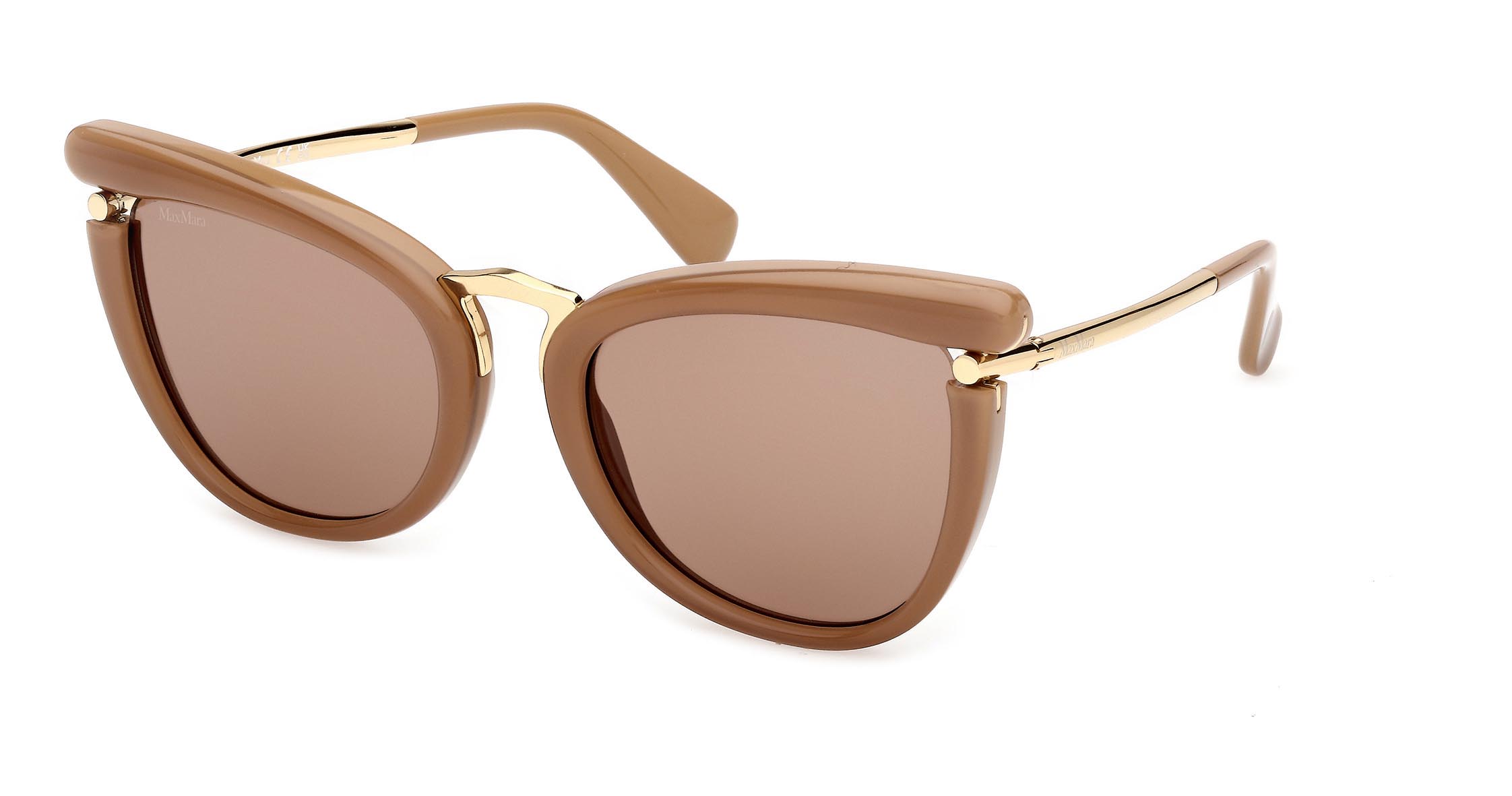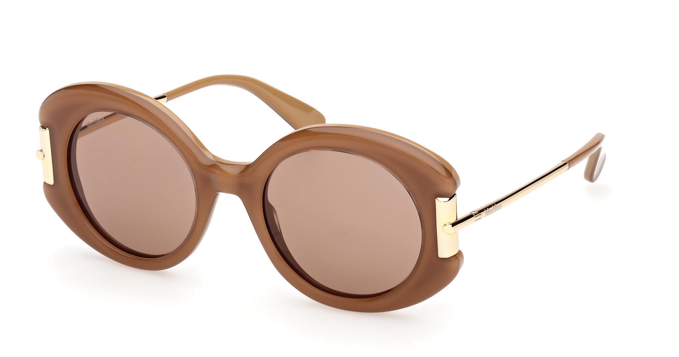 Nei modelli da sole, i frontali in acetato sono bold e arrotondati e accolgono il metallo delle aste come elemento strutturale e decorativo che spezza la continuità del design, creando punti luce preziosi e attraenti. I modelli da vista riprendono volumi ampi e proporzioni ispirate al passato, reinterpretandole con leggerezza contemporanea.