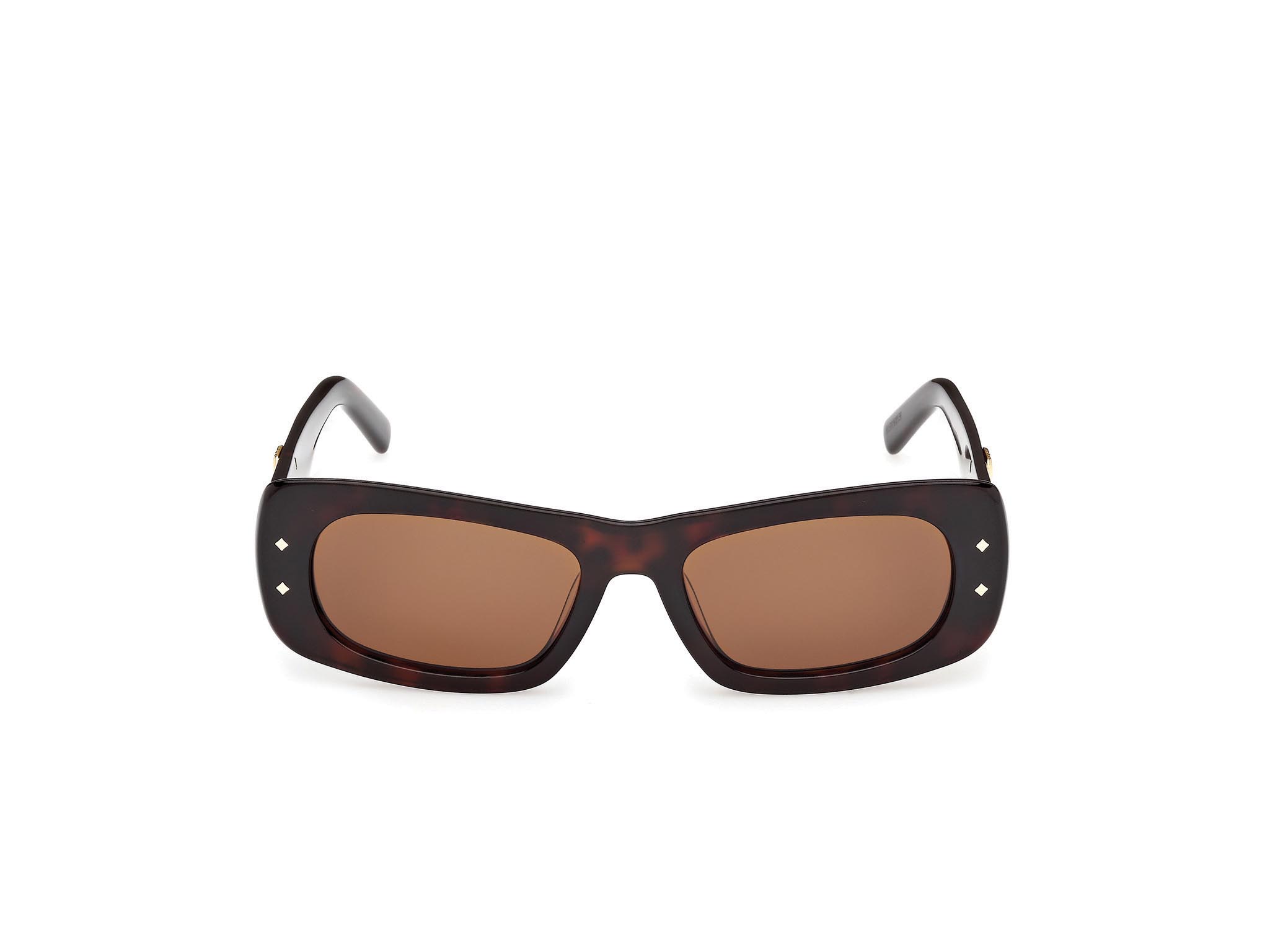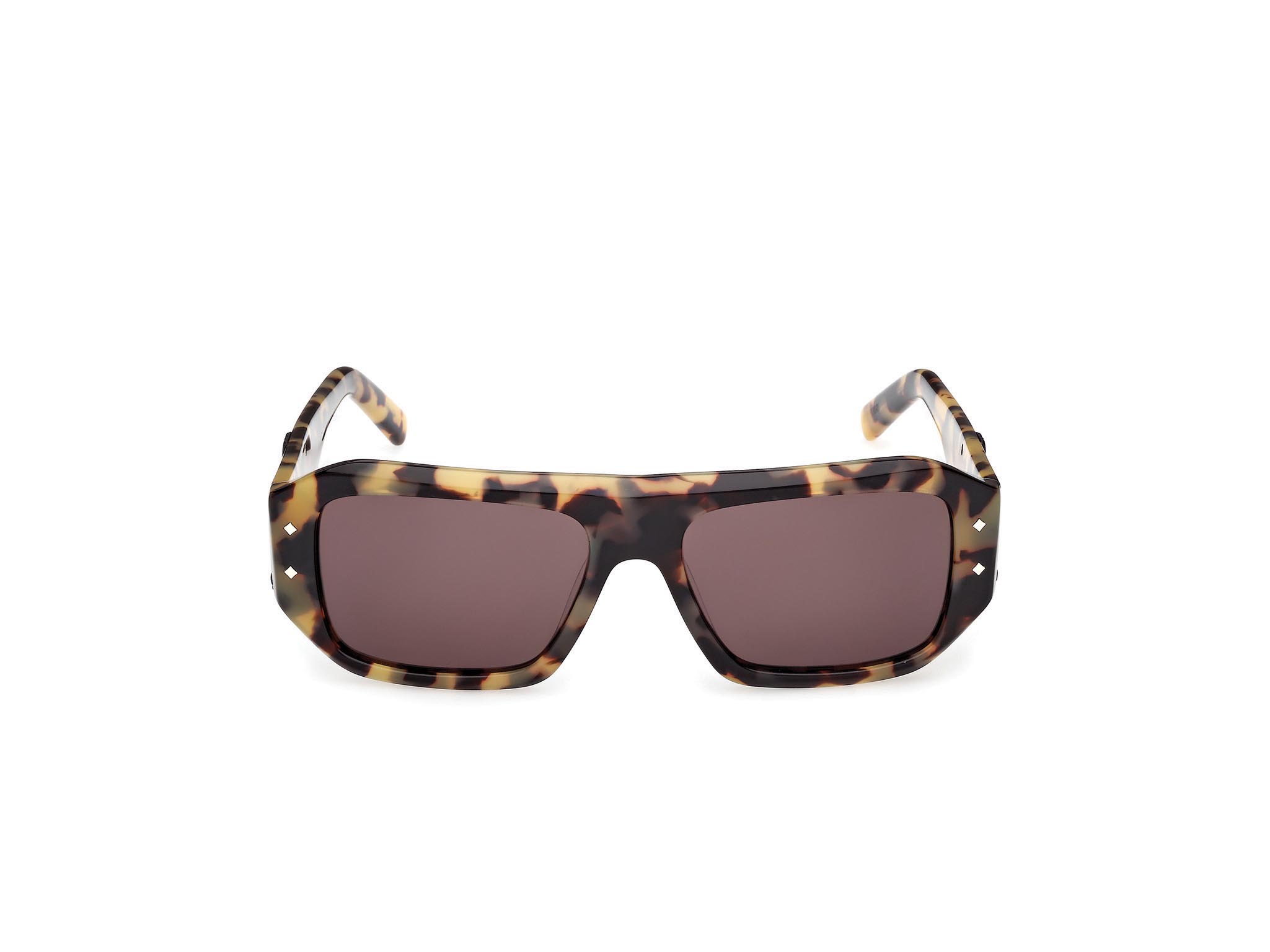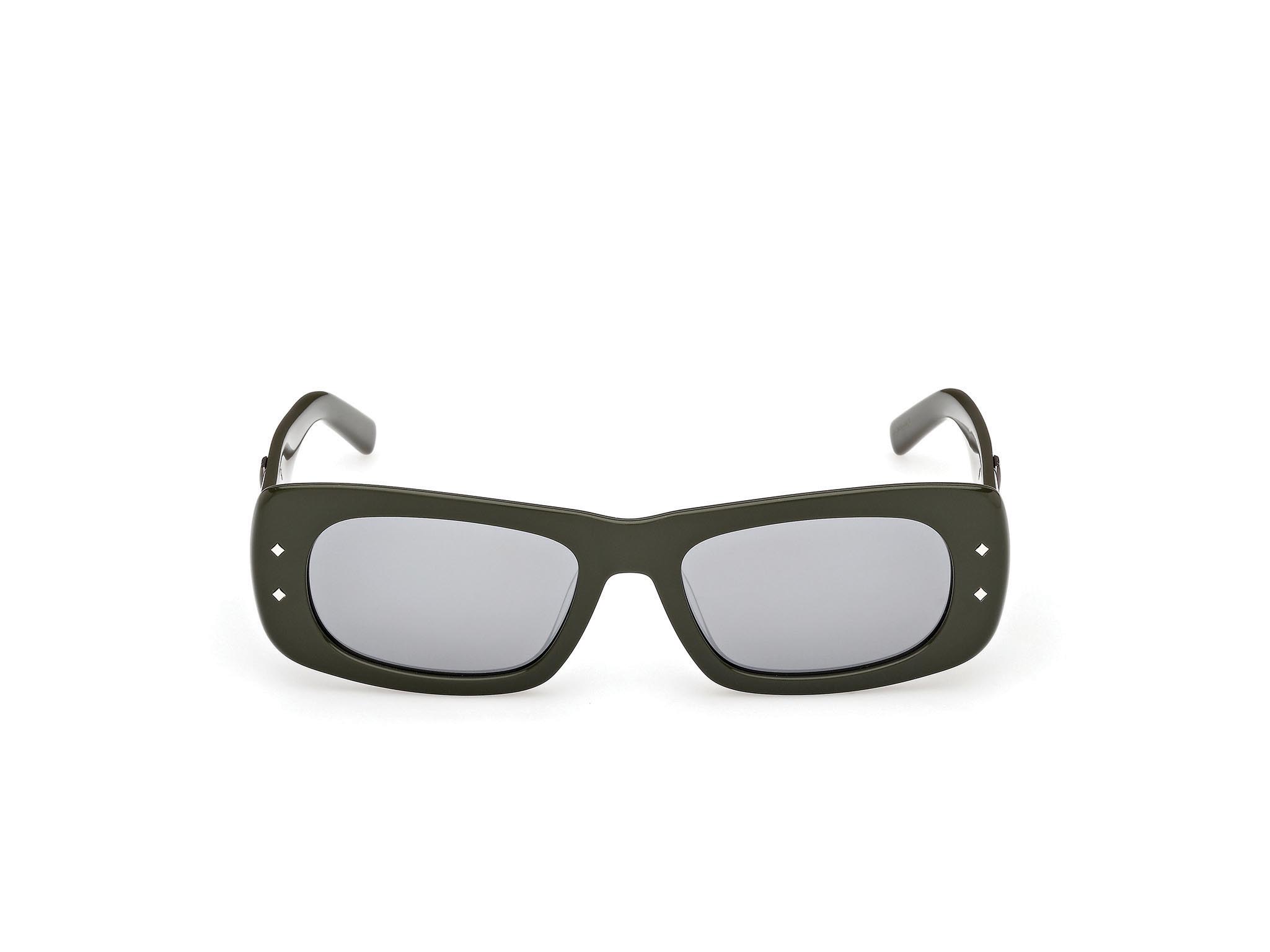 Gli occhiali da sole e da vista sono arricchiti da dettagli iconici direttamente tratti dal patrimonio legato al viaggio del brand. Accenti metallici e forme a diamante—un richiamo all’hardware dei celebri bagagli MCM—vengono reinventati come elementi scultorei.