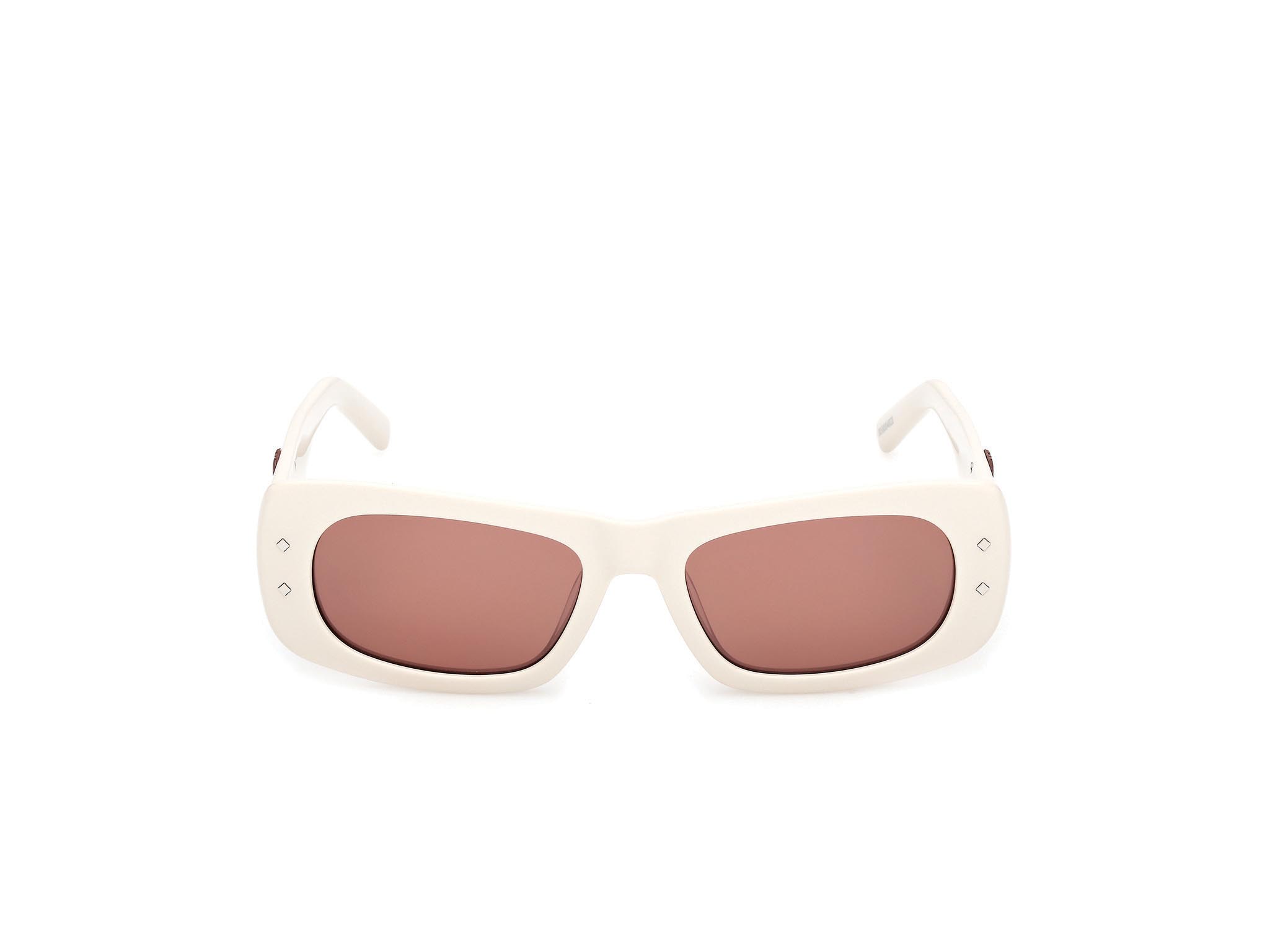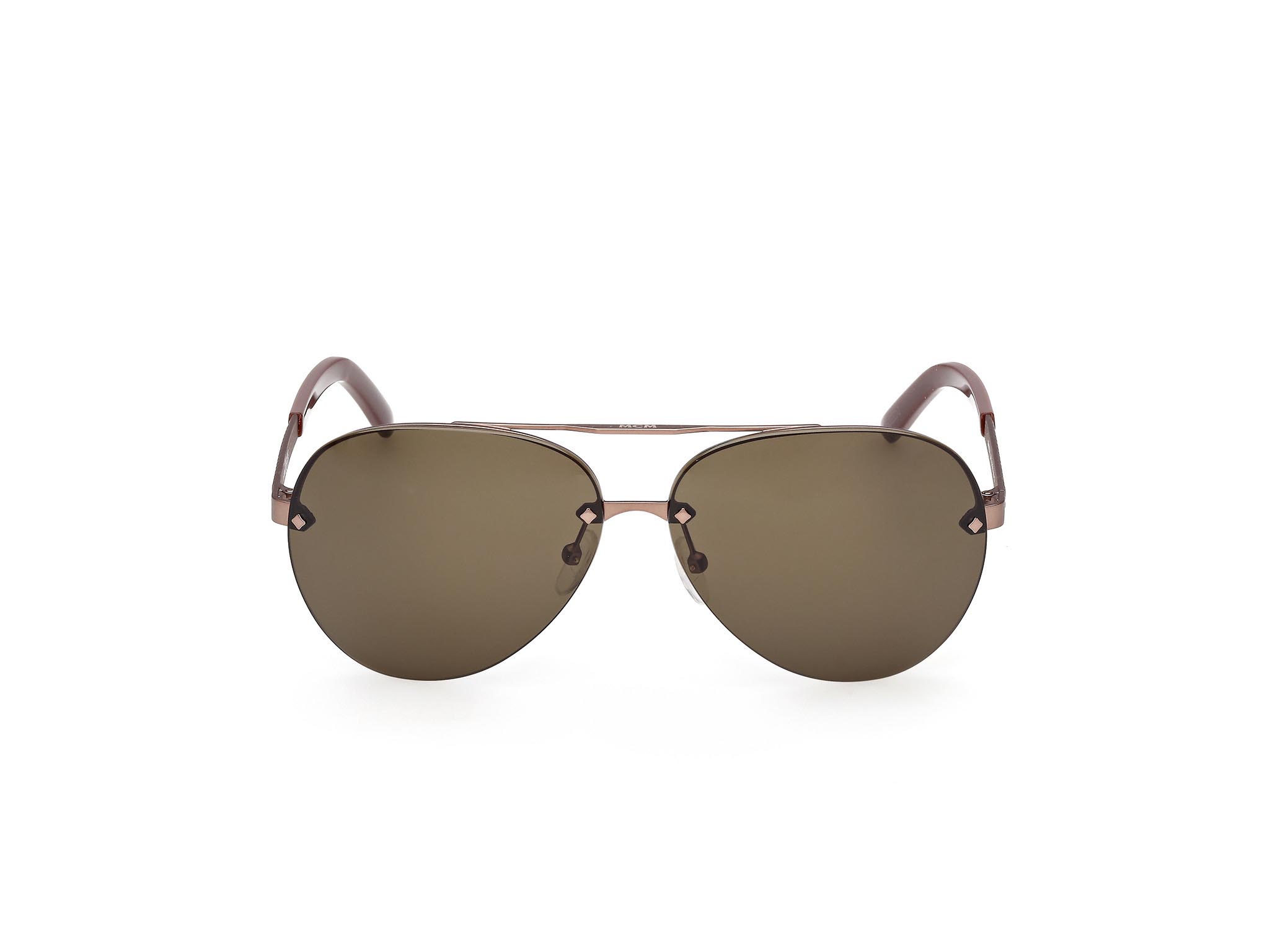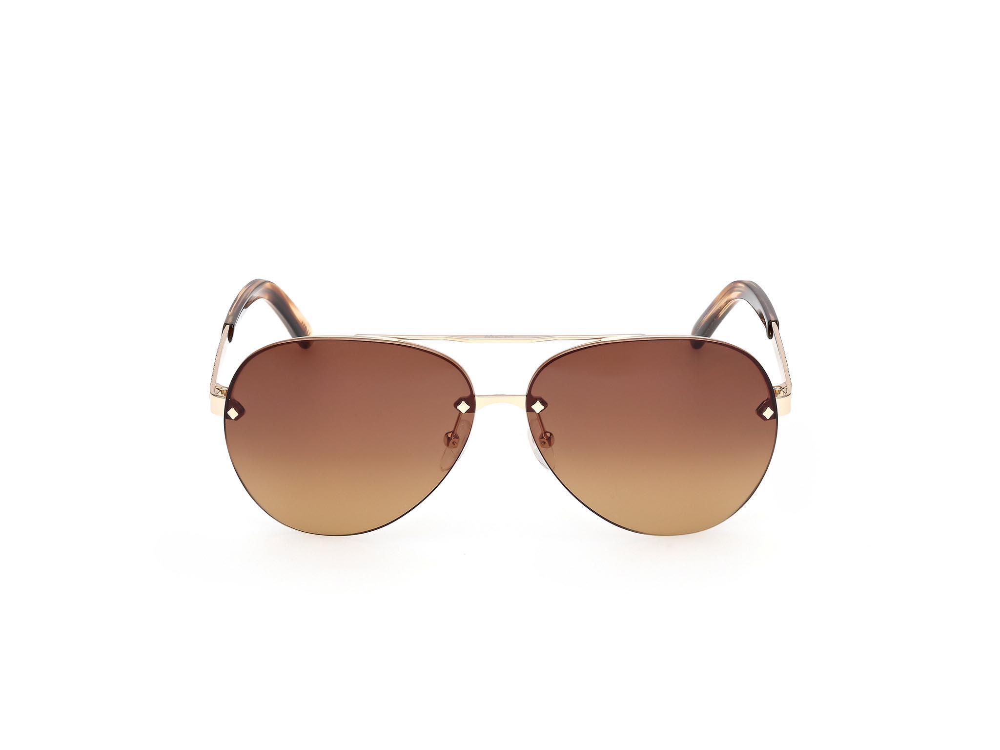 Gli occhiali da sole e da vista sono arricchiti da dettagli iconici direttamente tratti dal patrimonio legato al viaggio del brand. Accenti metallici e forme a diamante—un richiamo all’hardware dei celebri bagagli MCM—vengono reinventati come elementi scultorei.