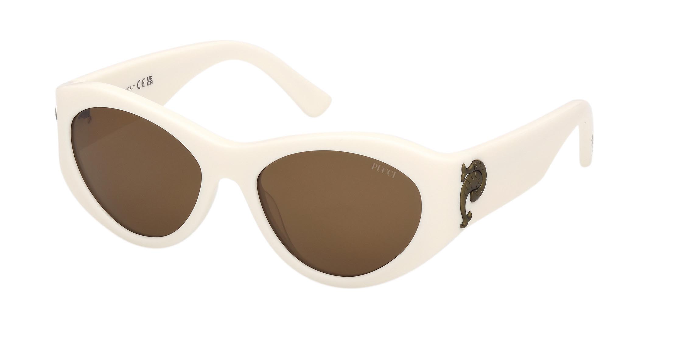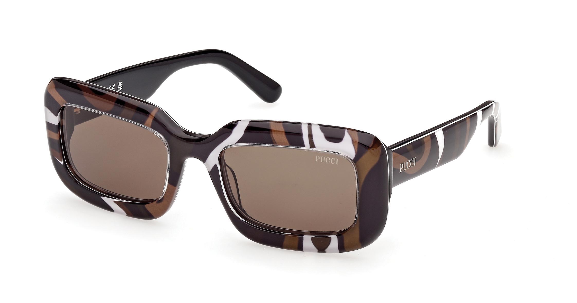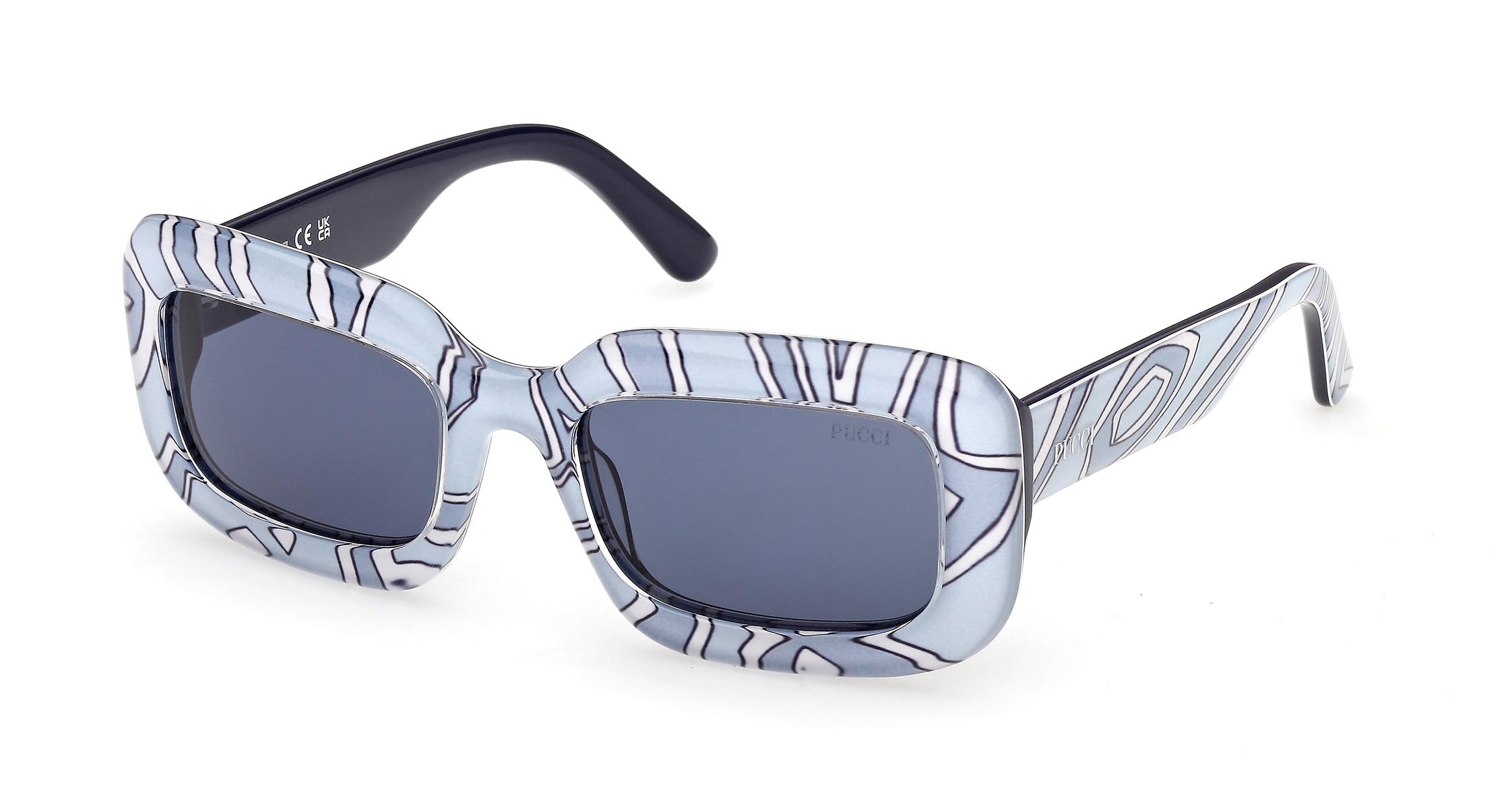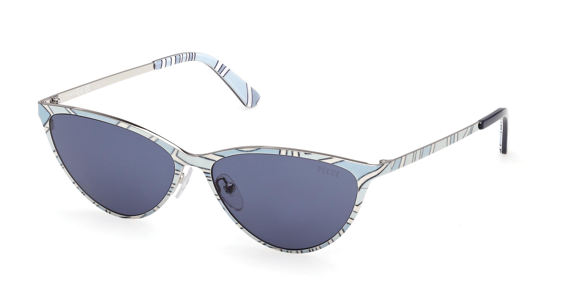 Le montature diventano vere e proprie superfici espressive, vestendosi dei motivi storici dell’archivio Pucci, reinterpretati attraverso un’intensa palette cromatica che evoca movimento e armonia. Tra queste, la celebre stampa Iride si rinnova attraverso combinazioni di colore fluide e avvolgenti, mentre la stampa Marmo, applicata su sofisticate montature in metallo, dà vita a sorprendenti giochi visivi capaci di esaltare la tridimensionalità delle forme.