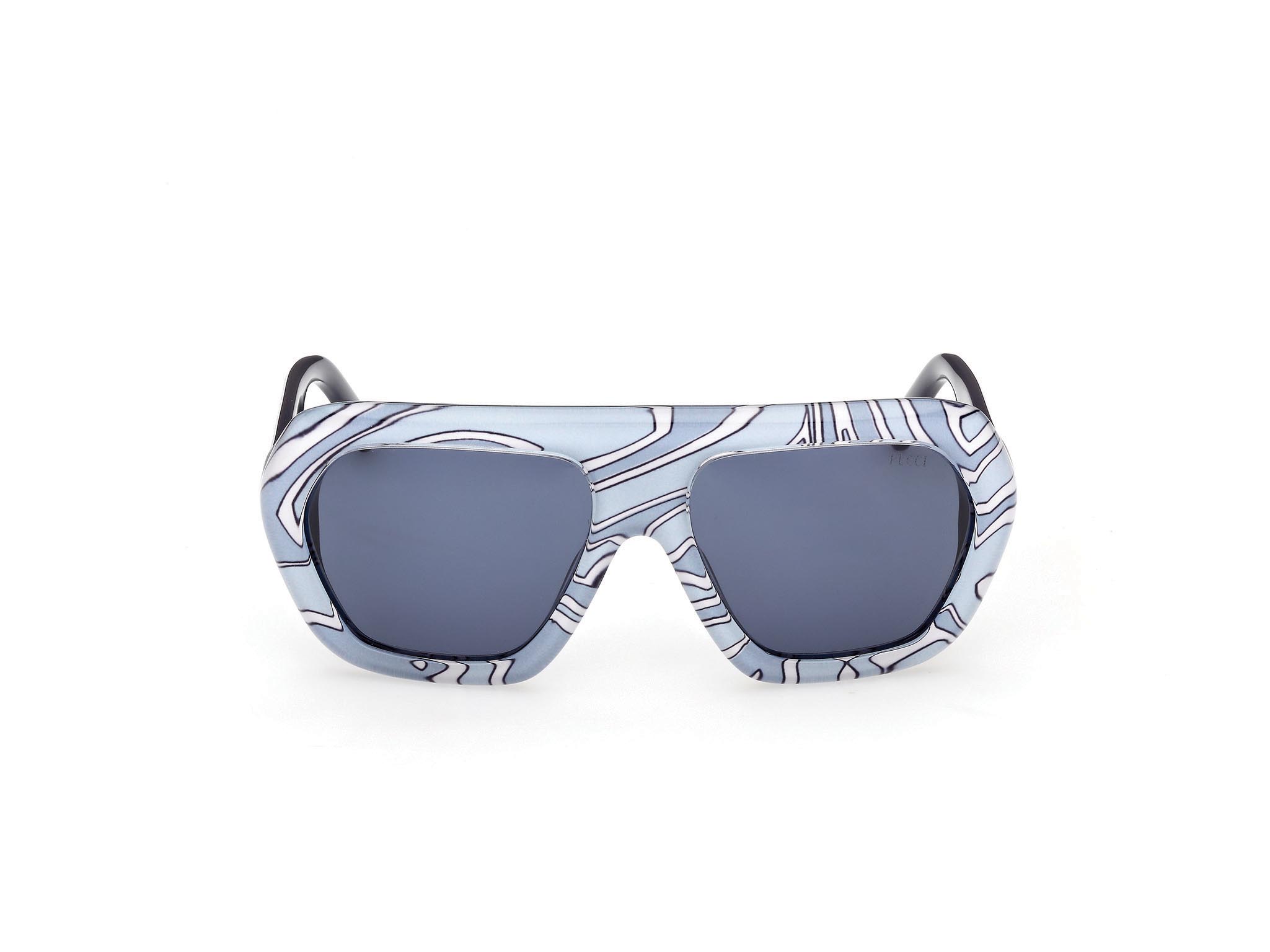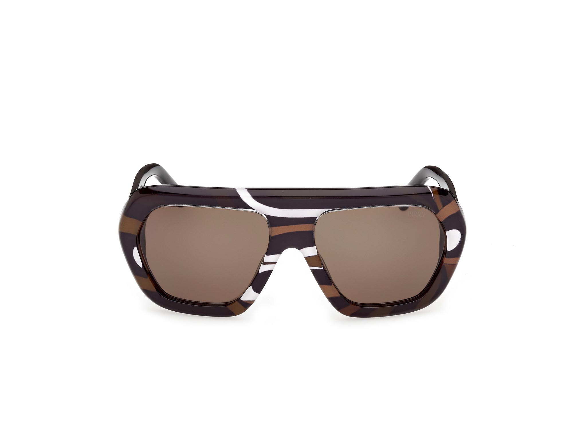 Oversized geometric acetate sunglasses expressing the Color Explosion theme. Slightly puffy bold front balanced by refined temples. Features the Labirinto print.