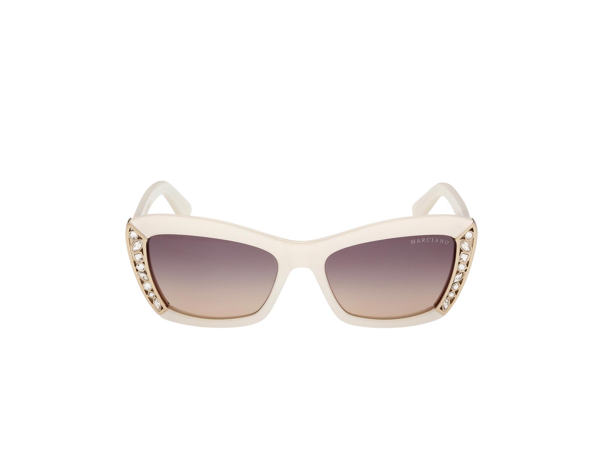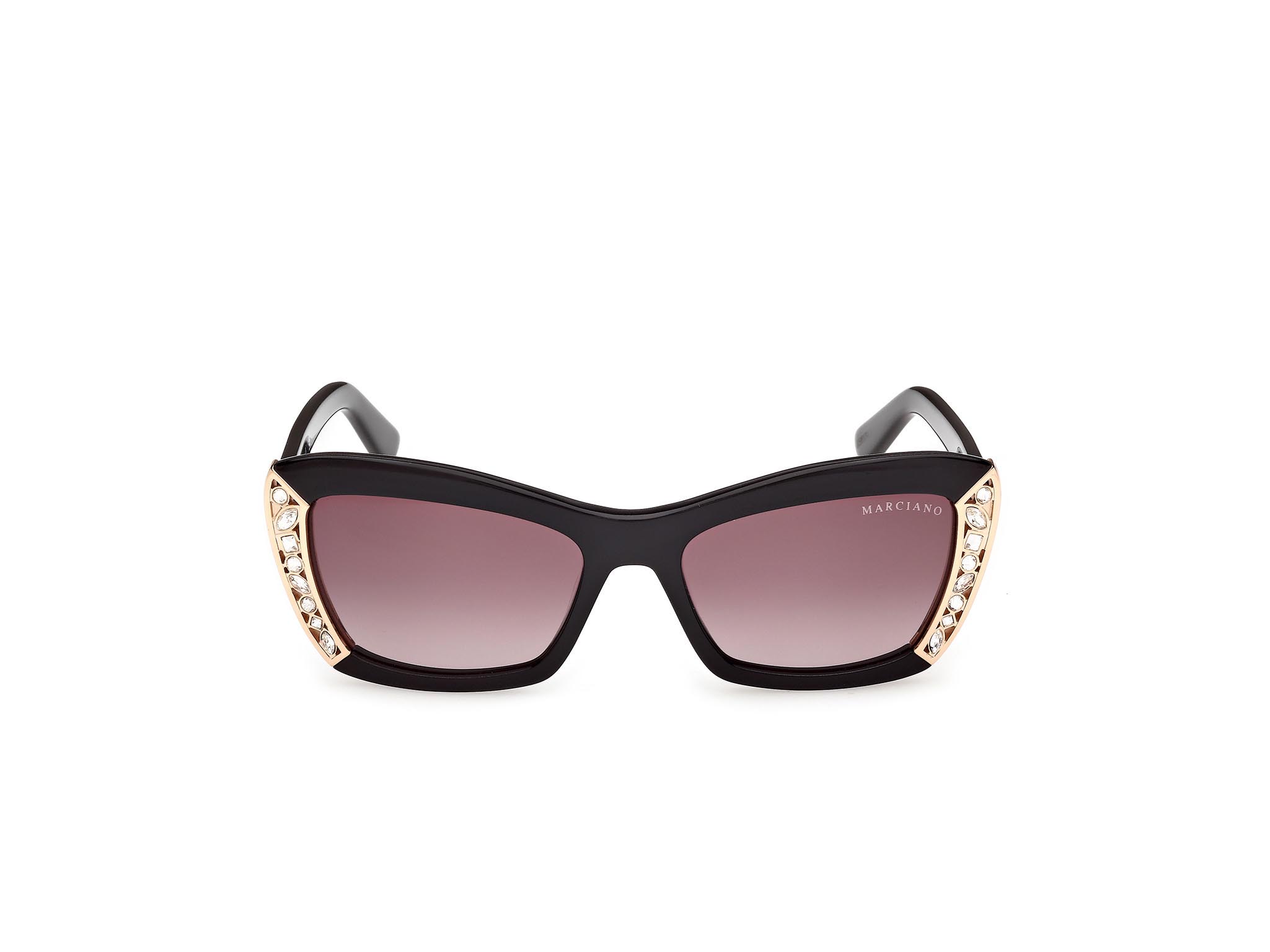 Sleek contemporary sunglasses with a lateral metal detail set with crystals of varying sizes for visual depth. Completed with the signature Marciano logo on temples.