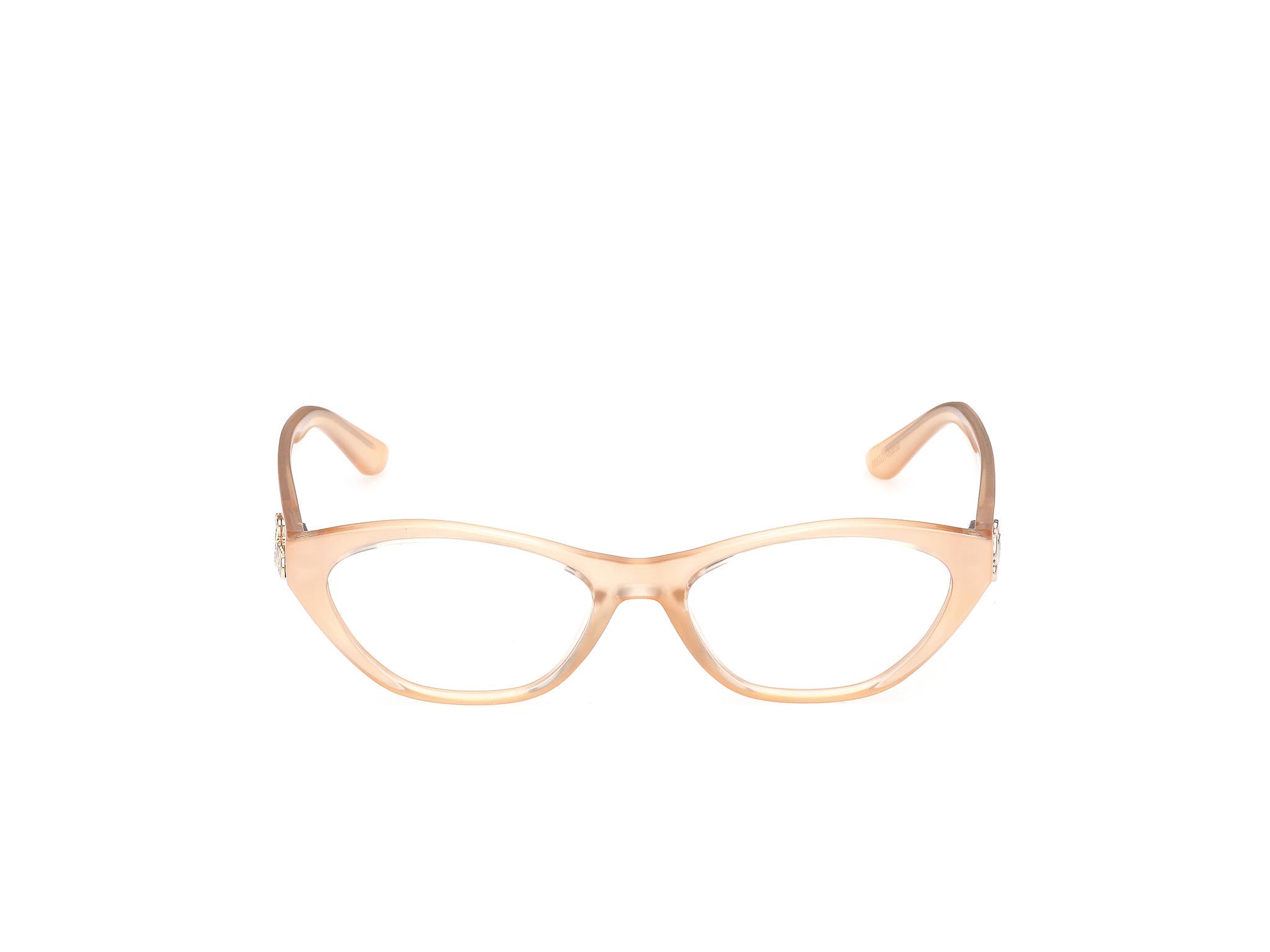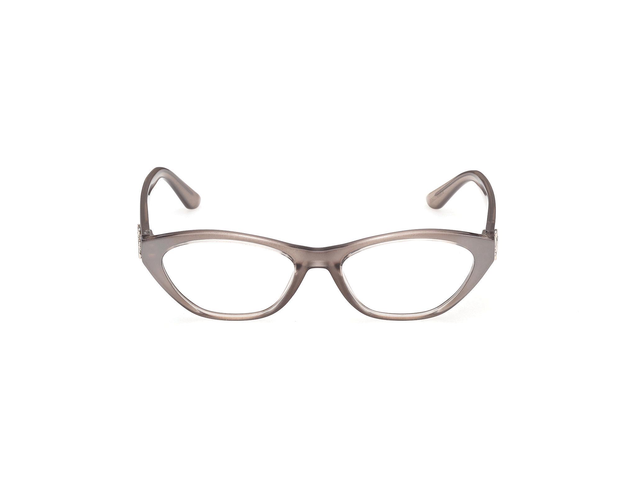 Bold cat-eye frame combining feminine charm with sharp, striking lines. Finished with the new signature cursive GUESS logo on the temples.