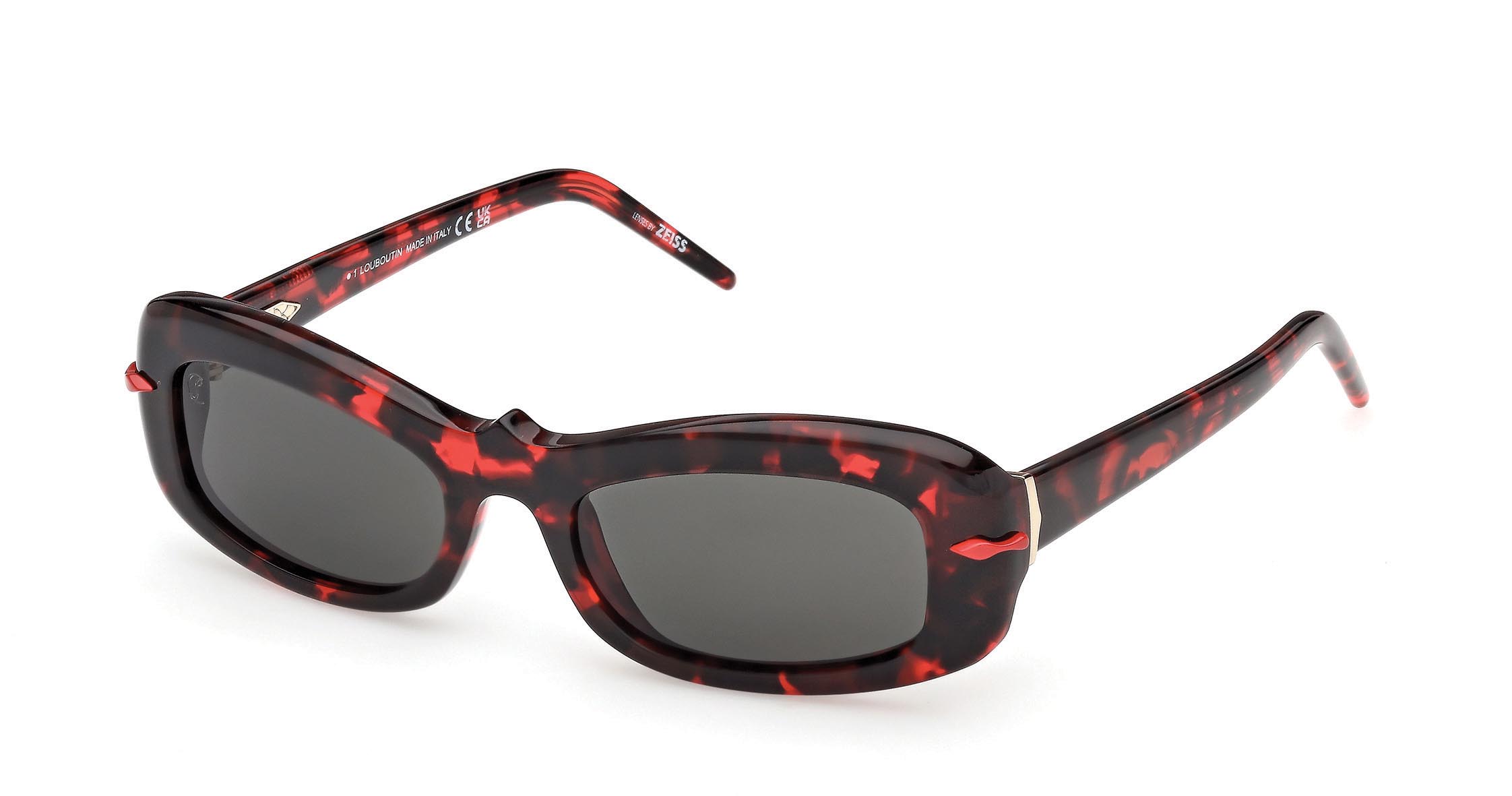 Rectangular acetate sunglasses showcasing the iconic red sole-inspired design element. This signature detail is also present on the temples’ hinges, which are enriched with exclusive new Havana shades.