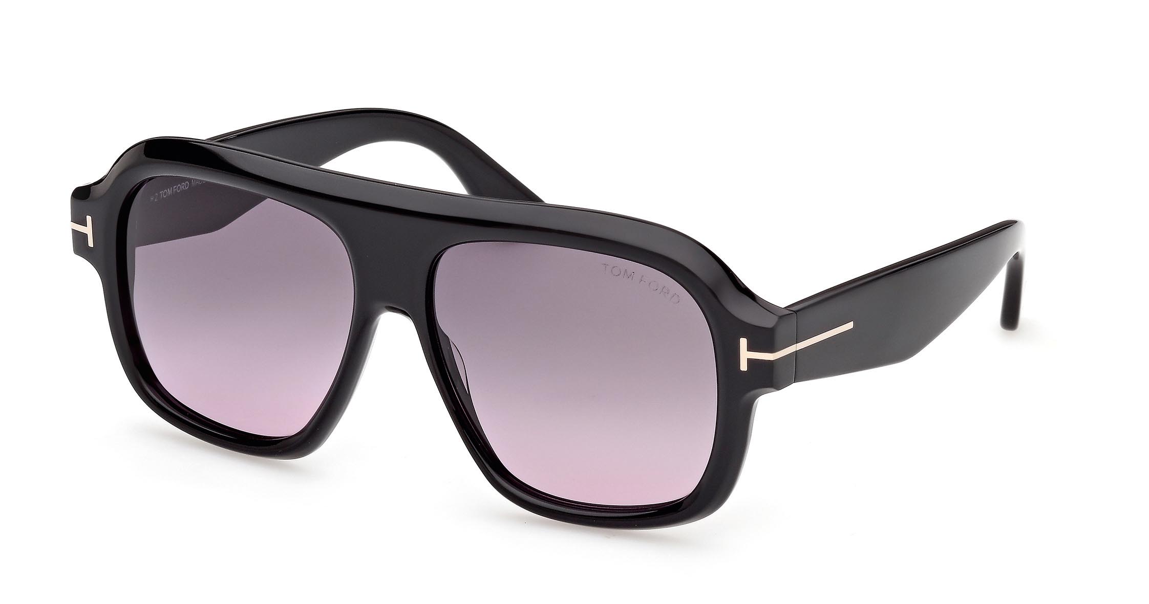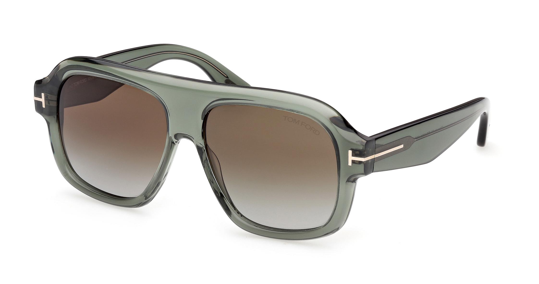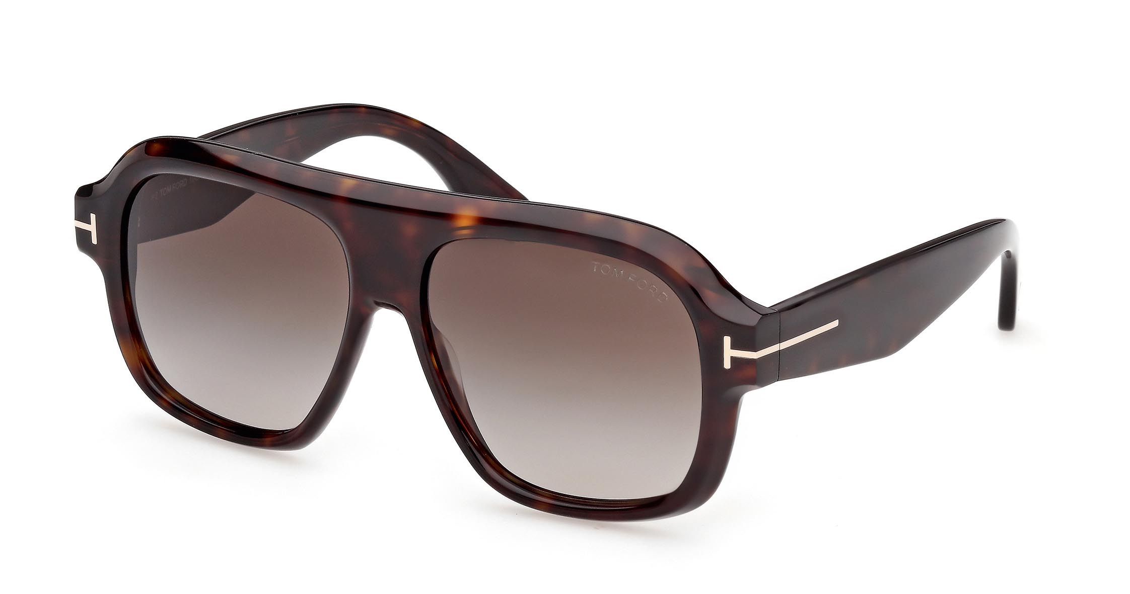 Ampio frontale squadrato e aste dalla sagoma sofisticata con il T logo. Una montatura con profili morbidi, proposta in tinte inedite e accompagnata da lenti sfumate.