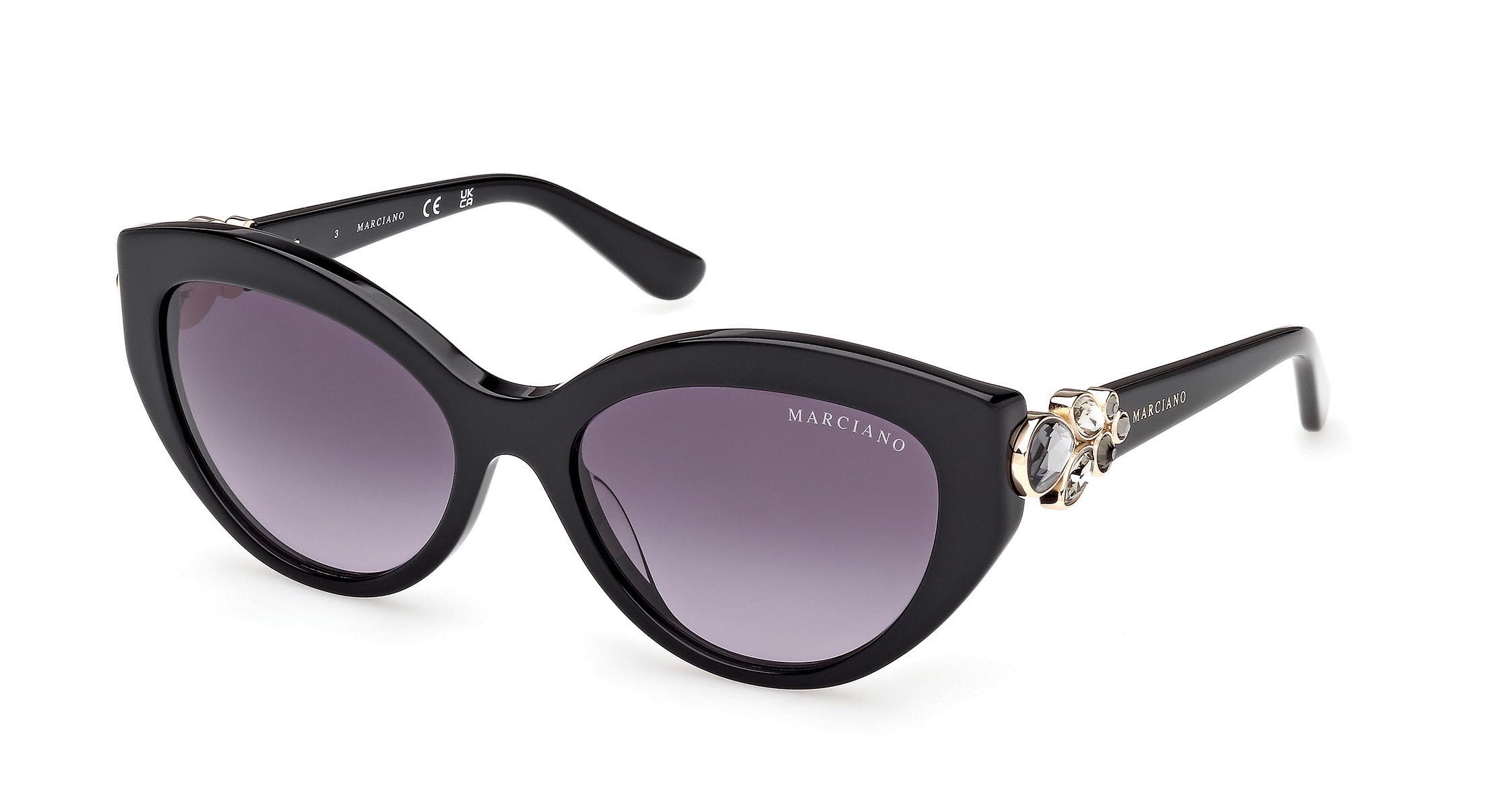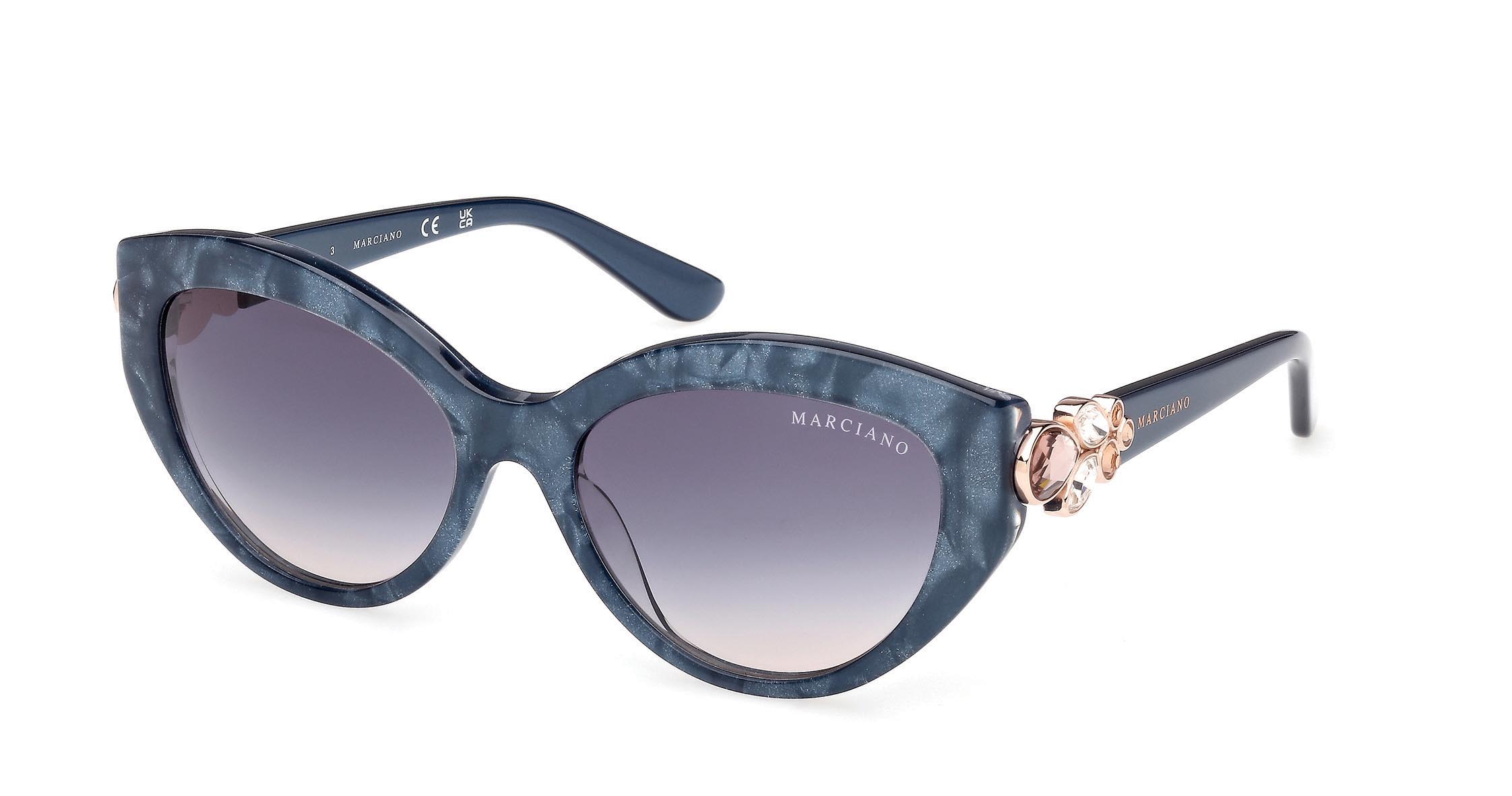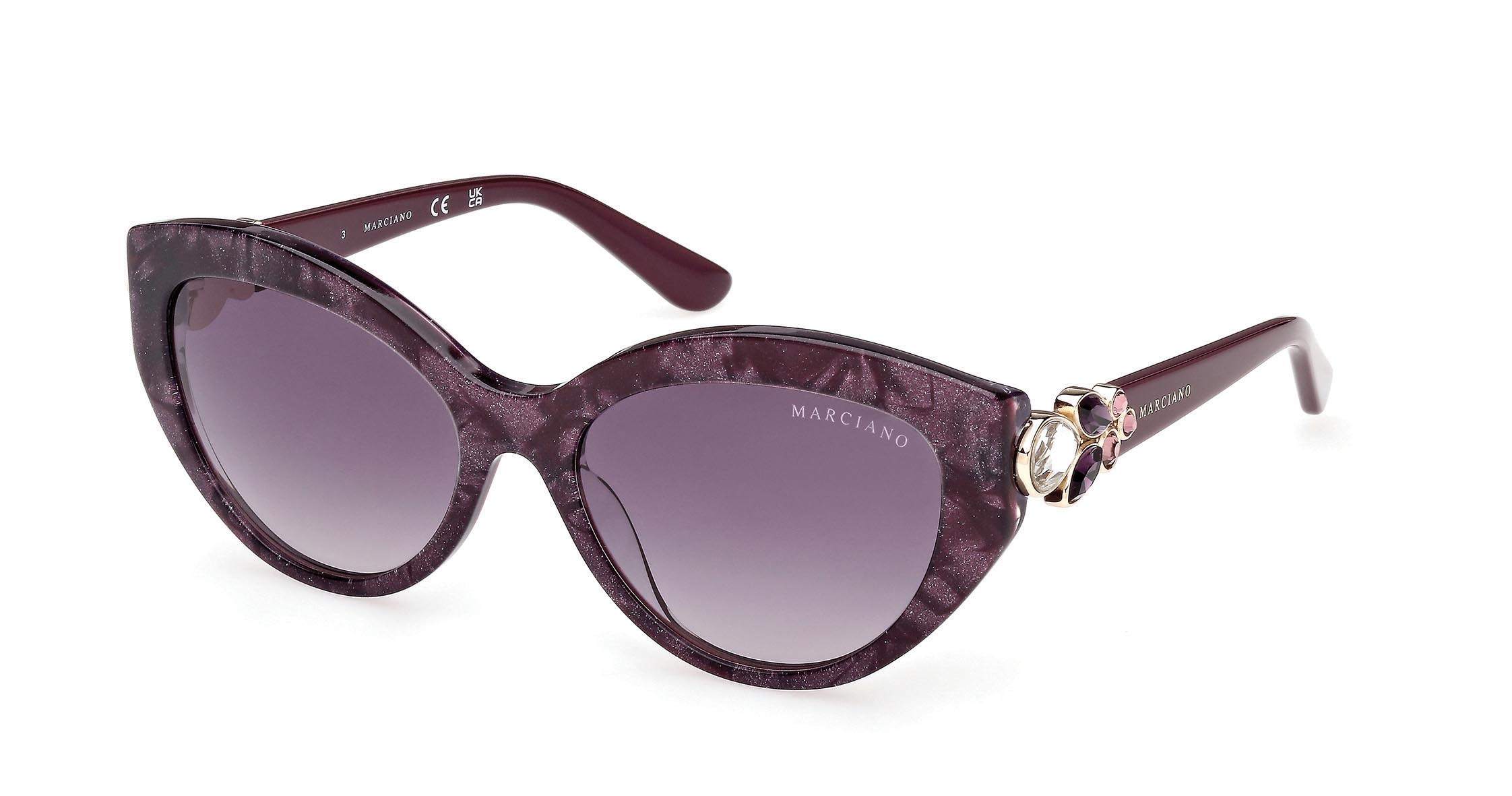 Occhiali da sole in acetato dalla grande forma cat-eye. La montatura si distingue per le sorprendenti ed eleganti tonalità Havana, mentre le aste in metallo, in tinta con il frontale, presentano il nuovo elemento floreale gioiello, scolpito con creatività attraverso pietre decorative.