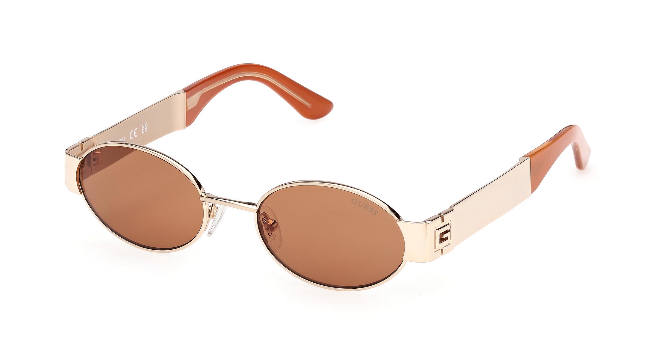 Occhiali con frontale ovale dal design elegante ed eclettico. Le aste ampie, che combinano metallo e plastica iniettata, sono valorizzate dal nuovo logo “G” squadrato.
