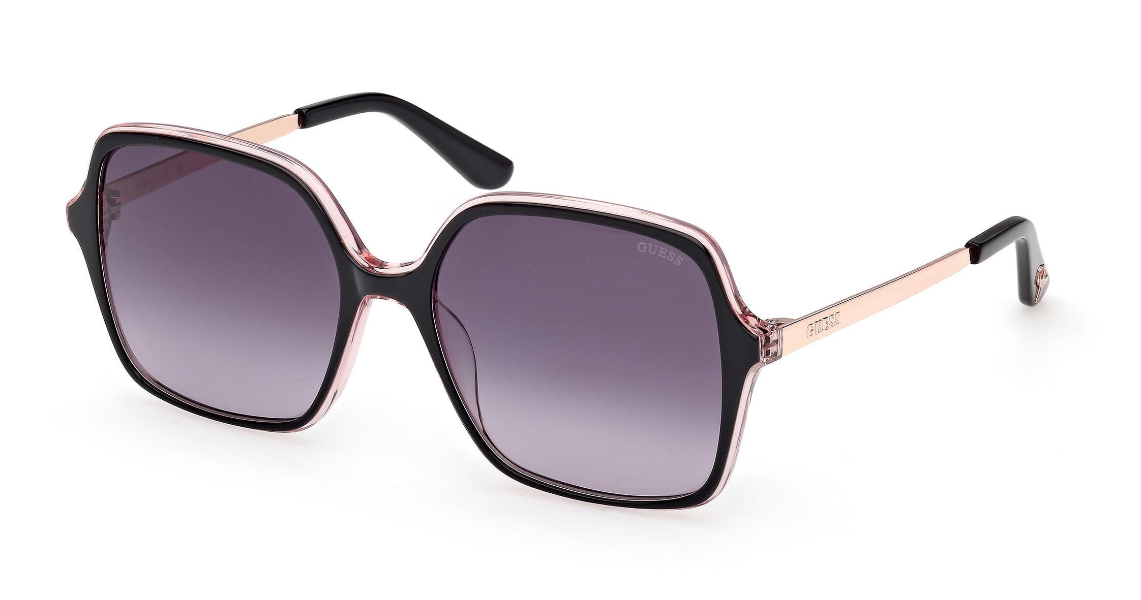 Occhiali da sole in acetato con frontale squadrato nero e profili rosa cristallo. I colori si ispirano alla collaborazione tra GUESS e la Get In Touch Foundation. Le aste in metallo con logo GUESS e i terminali in acetato decorati con il nastro simbolo della fondazione conferiscono un’identità distintiva. Disponibile anche in versione Asian fitting per un comfort ottimale.