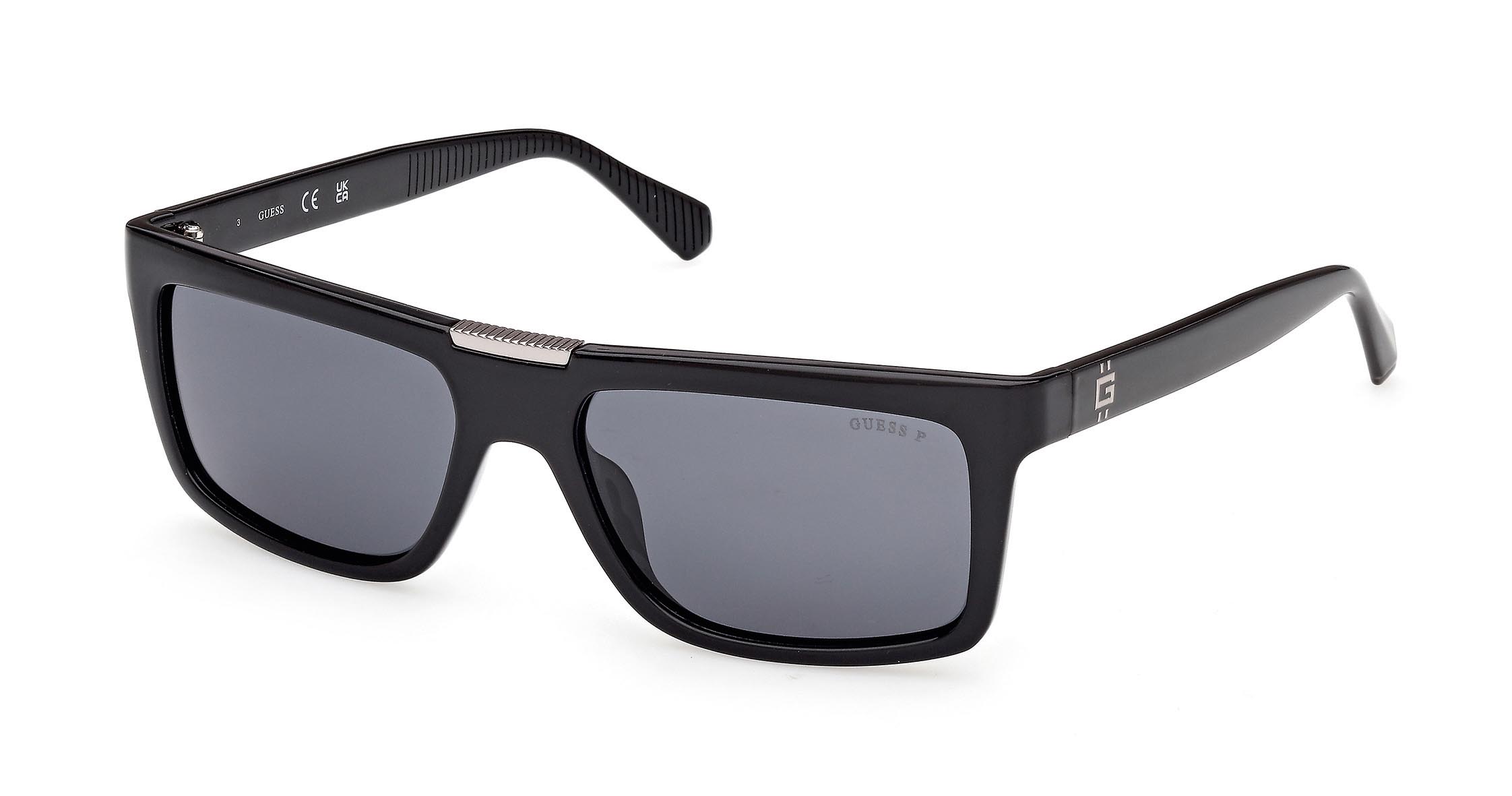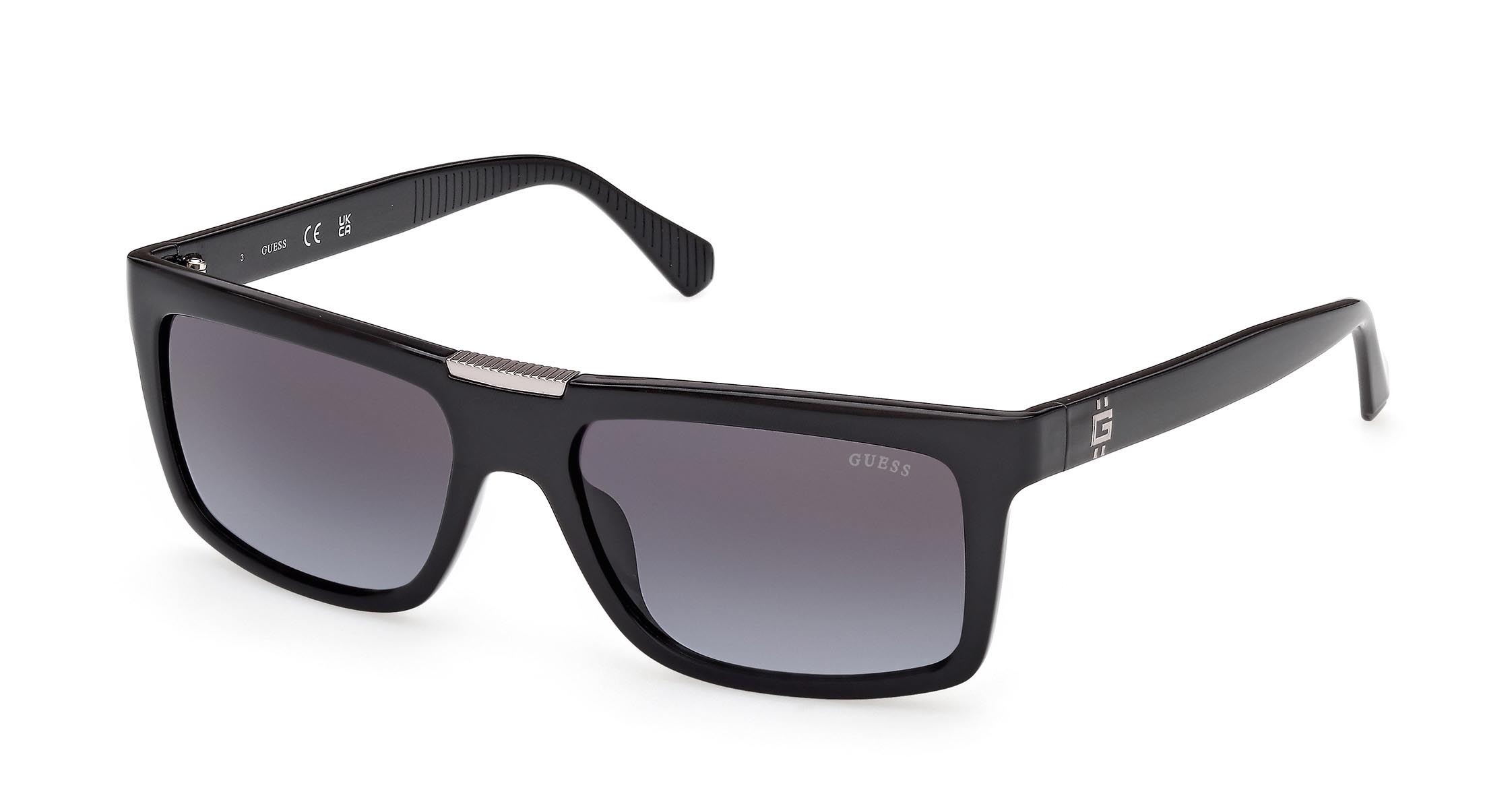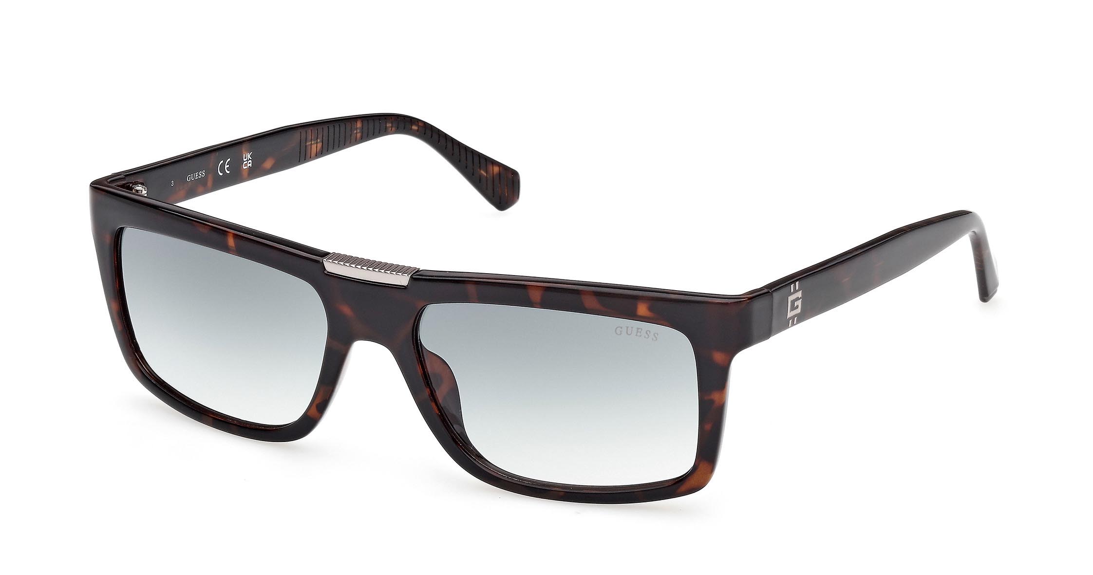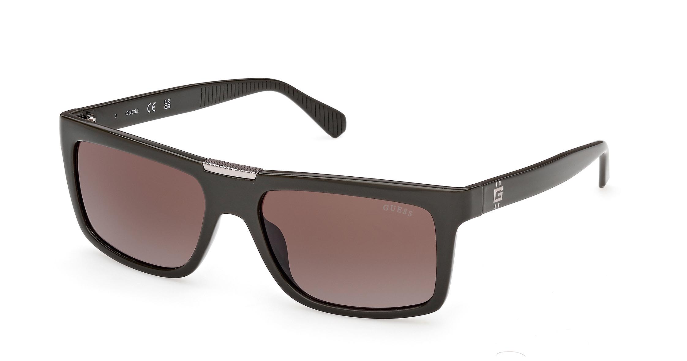 Occhiali da sole da uomo che uniscono stile moderno e fascino classico. Il frontale rettangolare è abbinato a dettagli in metallo semi-opaco nella parte superiore. Le aste in plastica iniettata sono impreziosite dall’iconico logo “G” con doppia linea verticale.