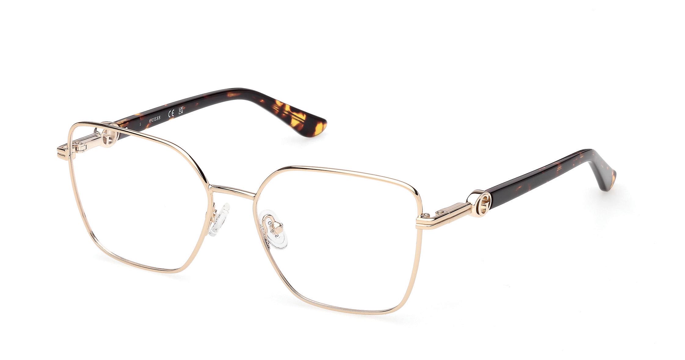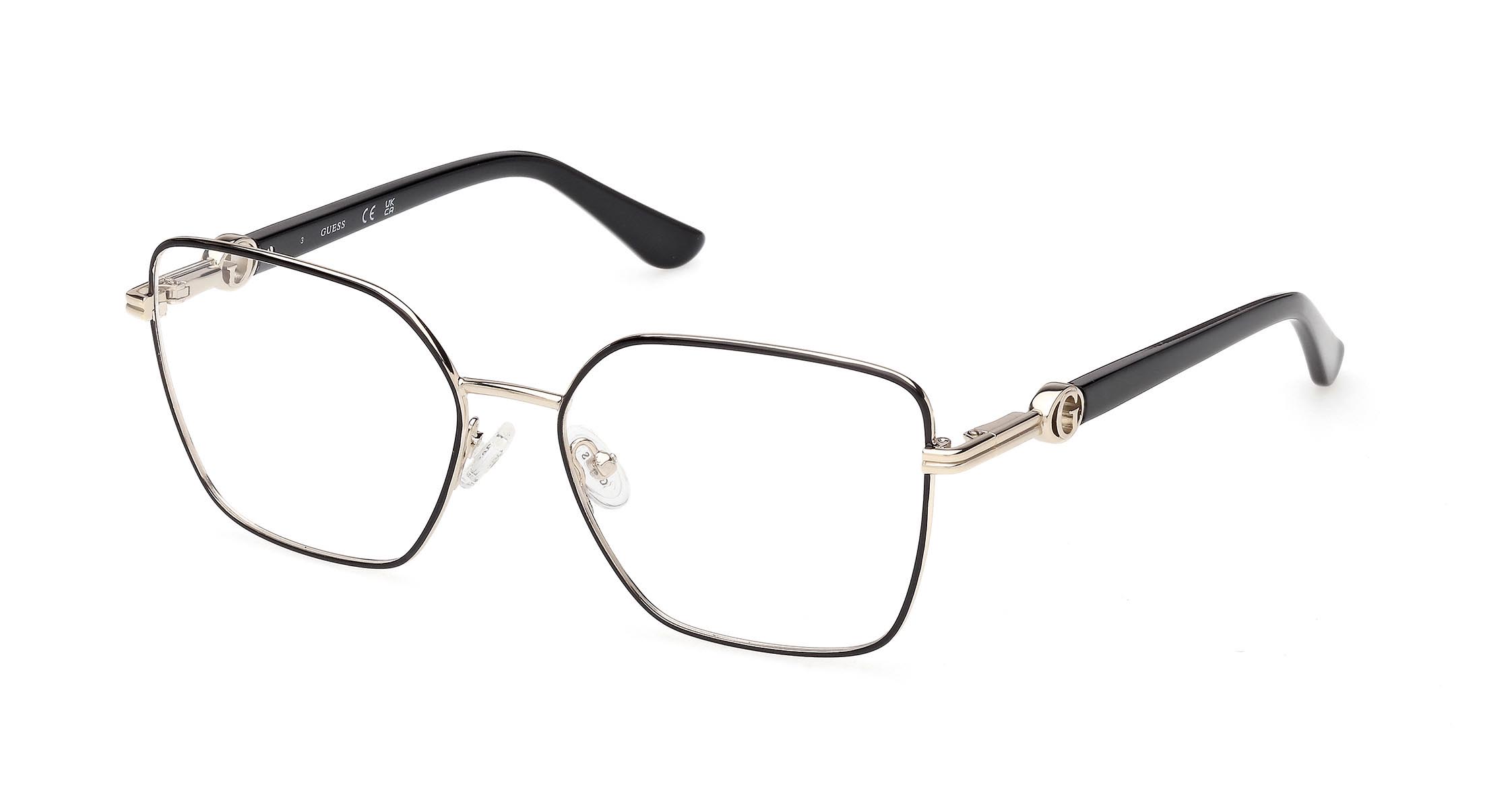 Montatura da vista oversize in metallo con profili smaltati e silhouette squadrata. Le aste sono definite dal logo “G” Forever GUESS in forma ovale, mentre i terminali in acetato sono disponibili in diverse varianti cromatiche.