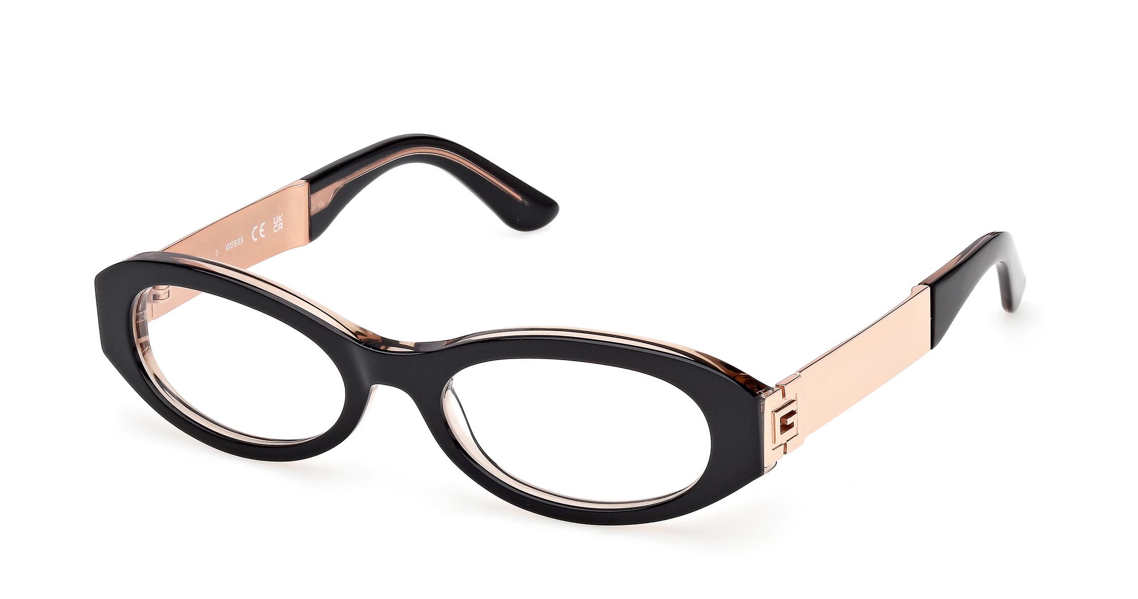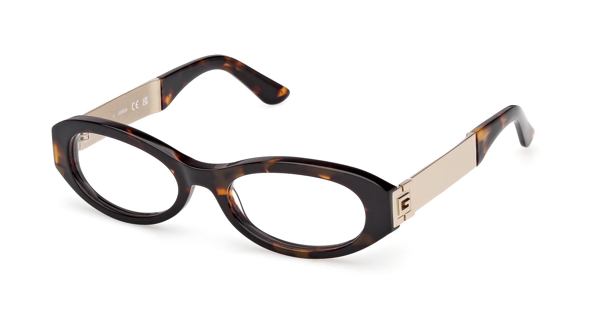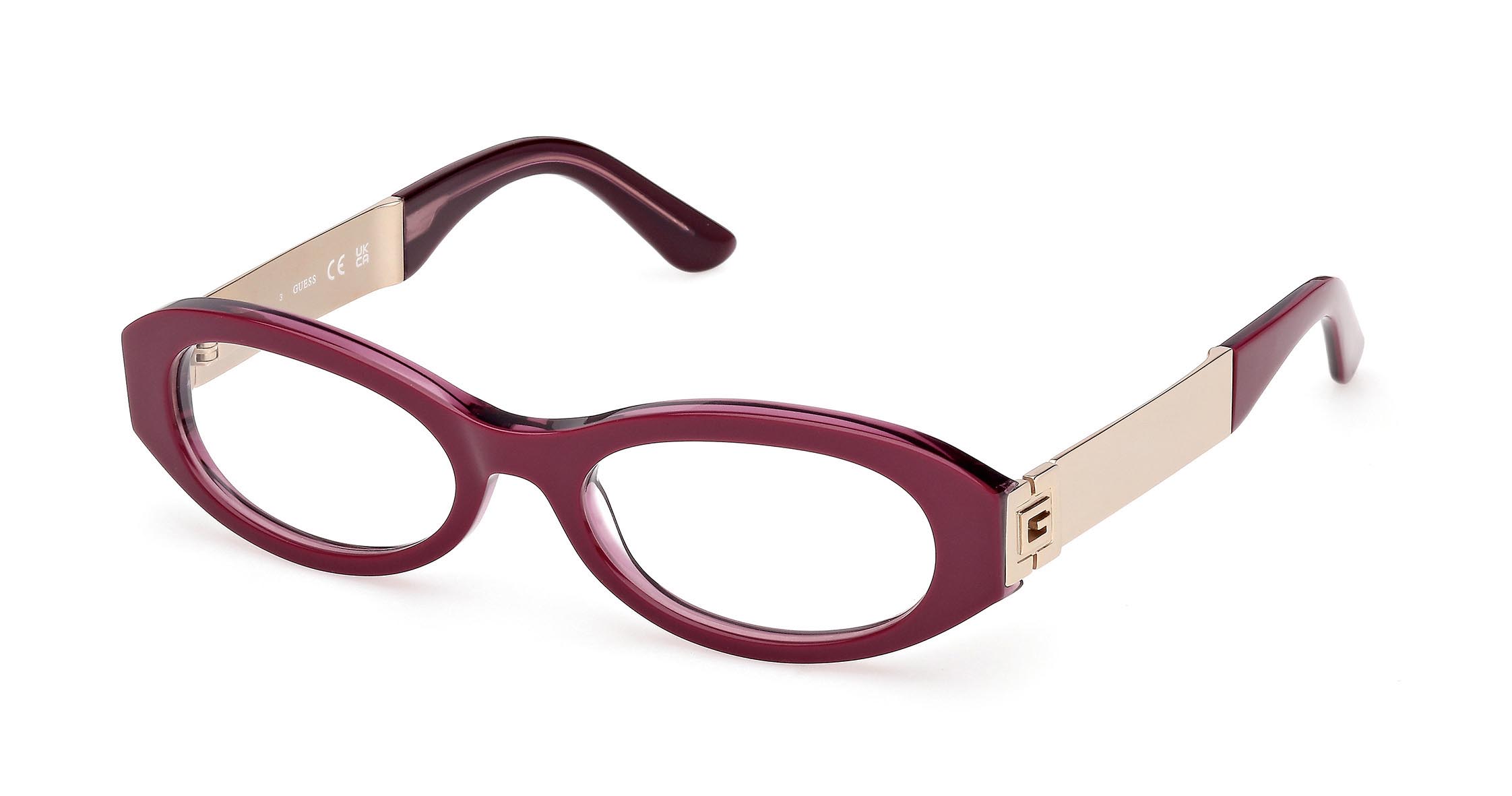 Occhiali da vista con frontale ovale in acetato e stile giovane e trendy. Le aste in metallo, robuste e marcate, sono decorate con il logo “G” squadrato, mentre i terminali coordinati al colore del frontale aggiungono un tocco vivace.