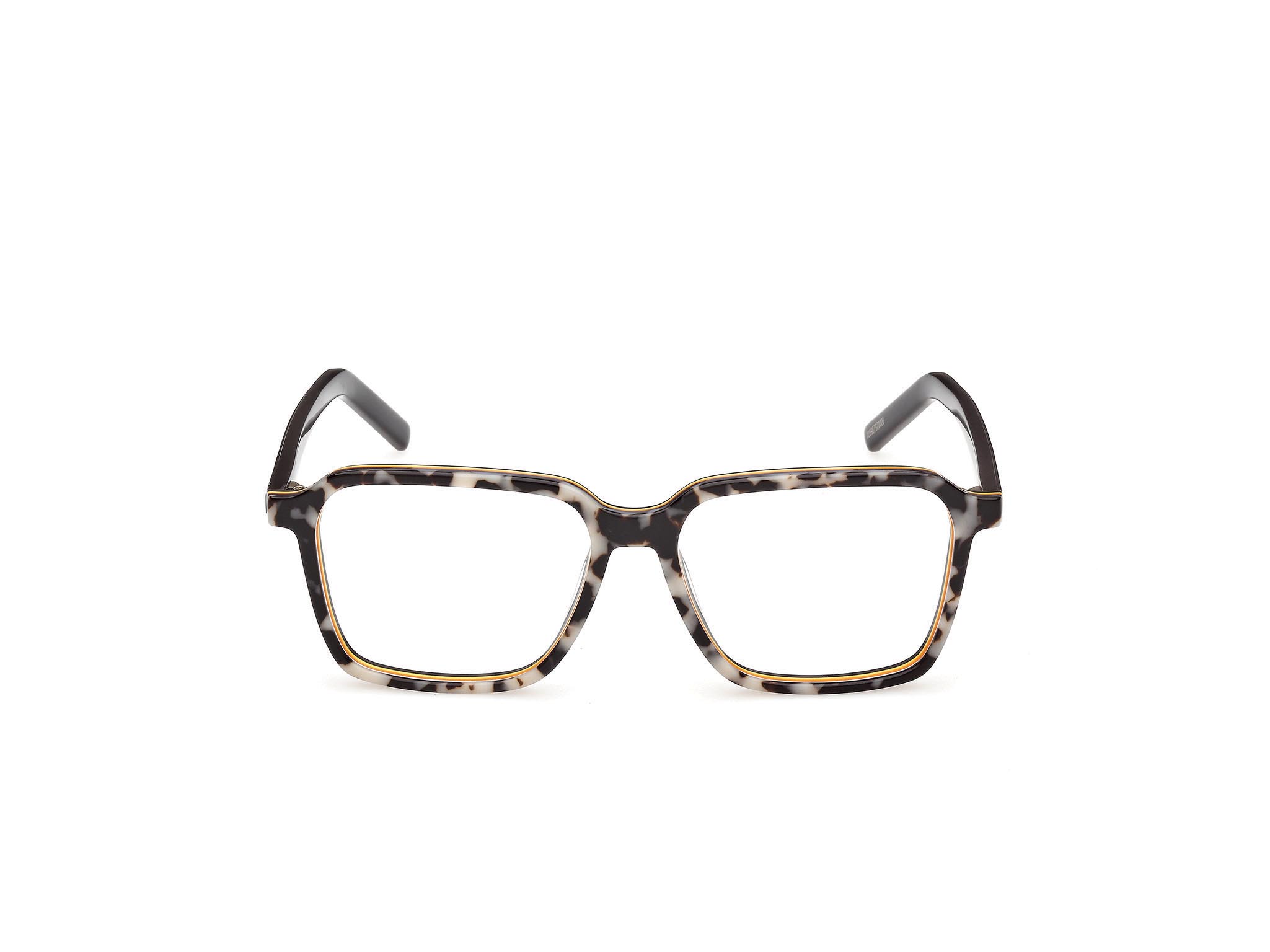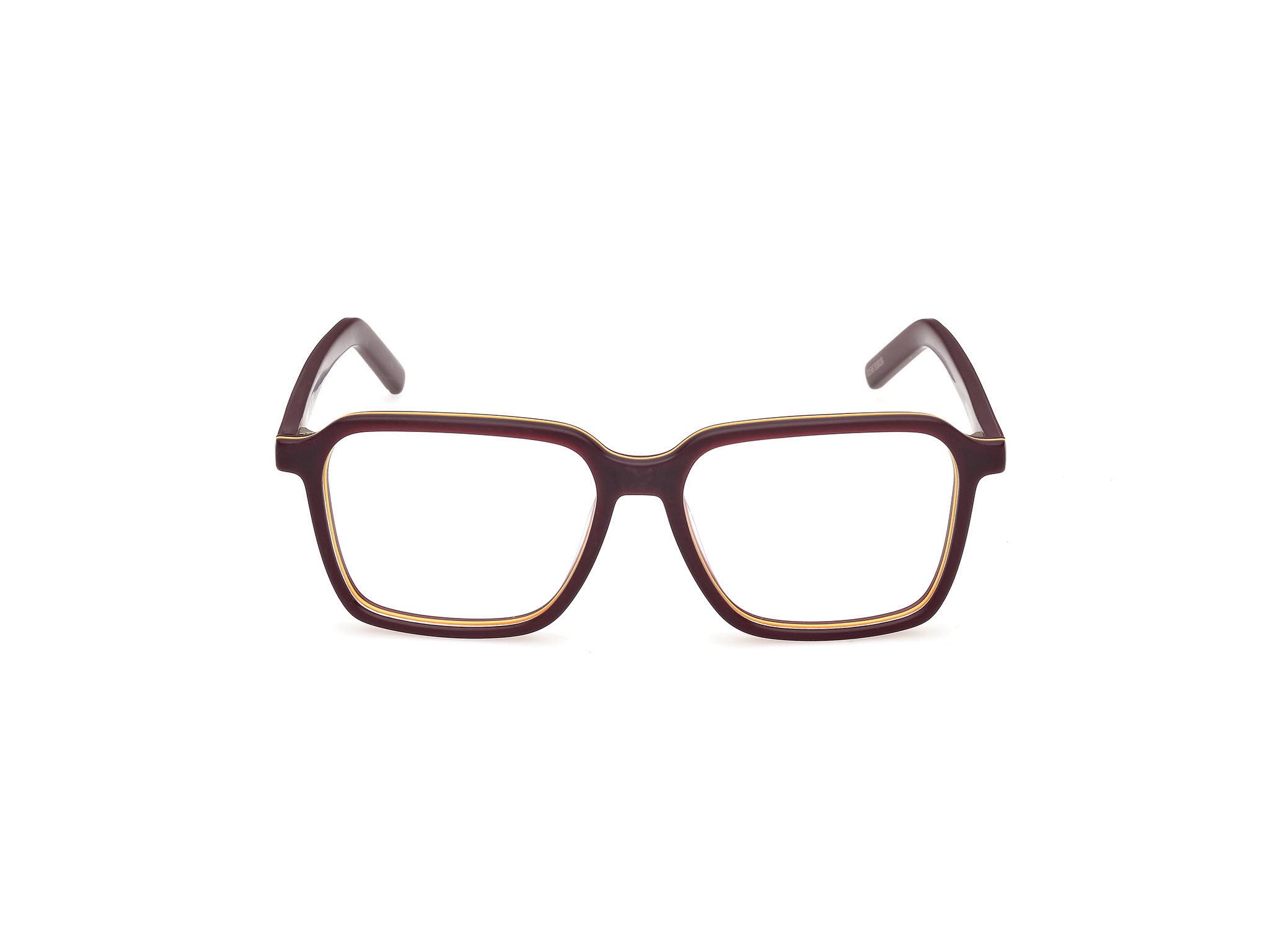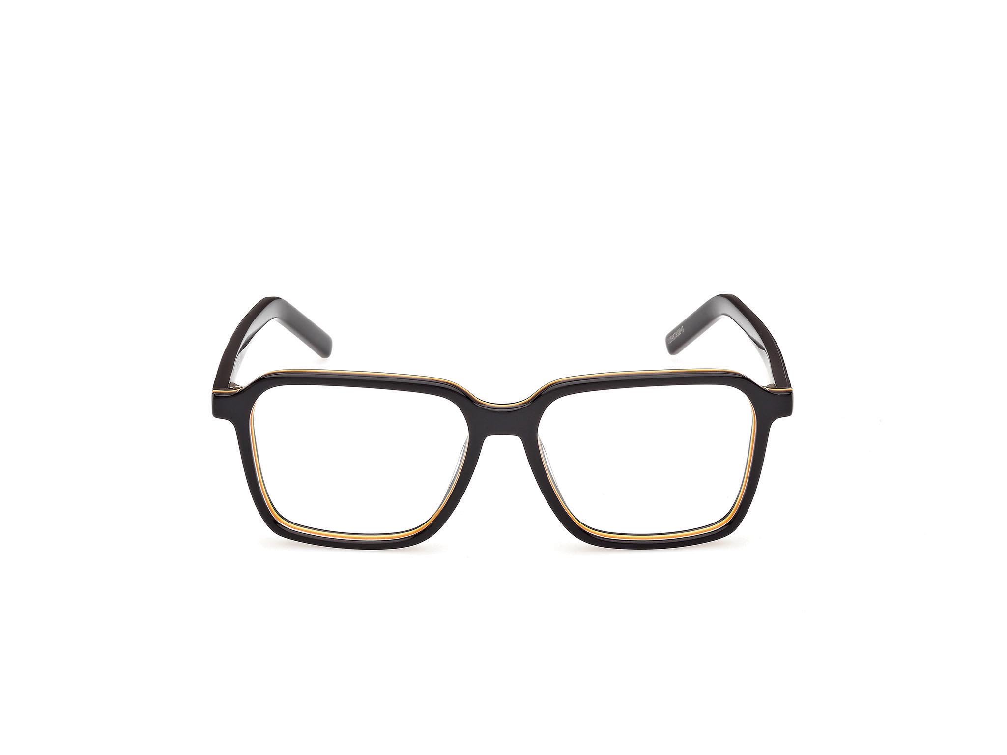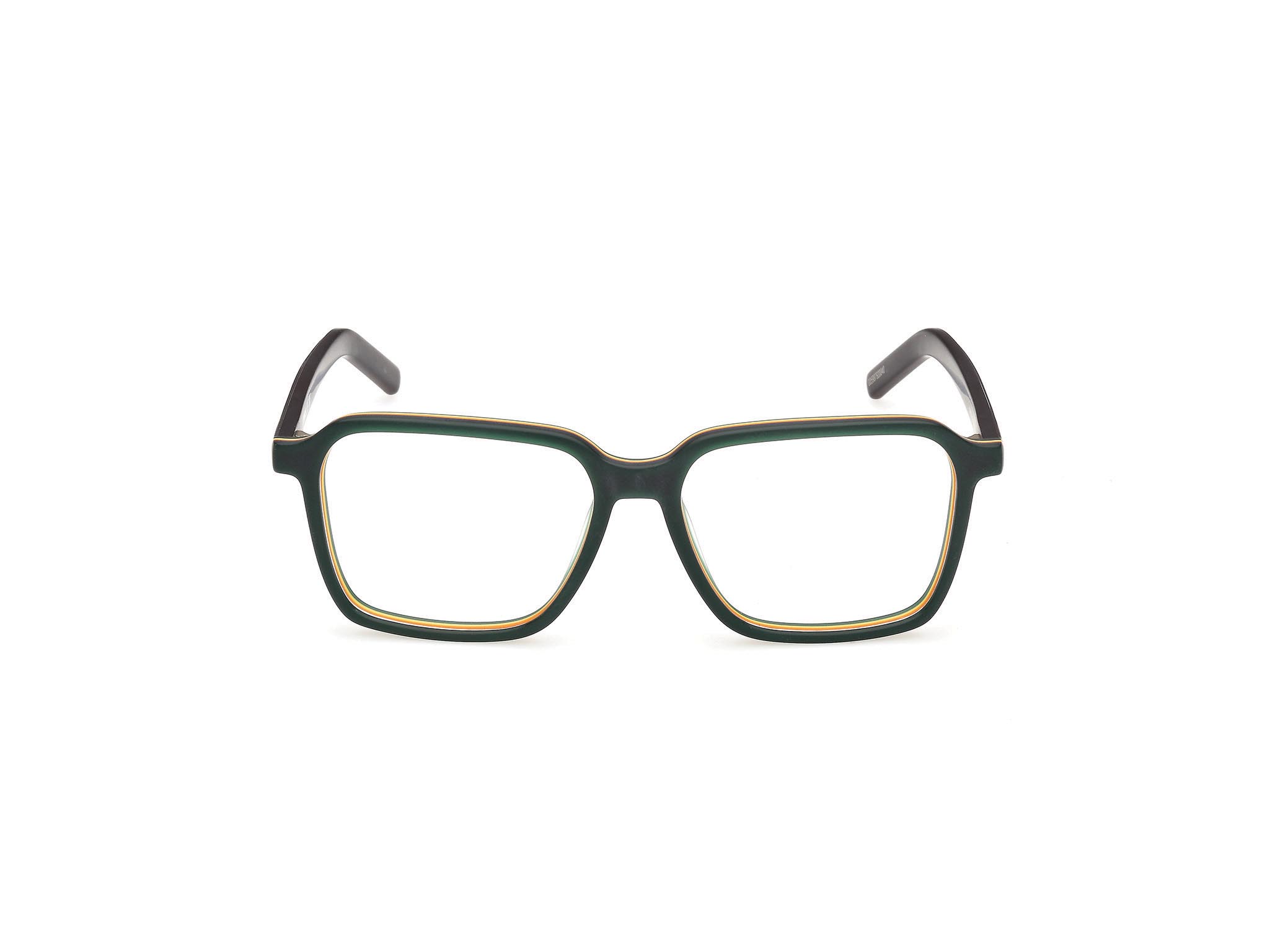 Montatura da vista geometrica in acetato con la colorazione del Tape riprodotta sul frontale, realizzata attraverso una lavorazione a tre strati. Le aste sottili con lettering del brand completano un design contemporaneo e bilanciato.