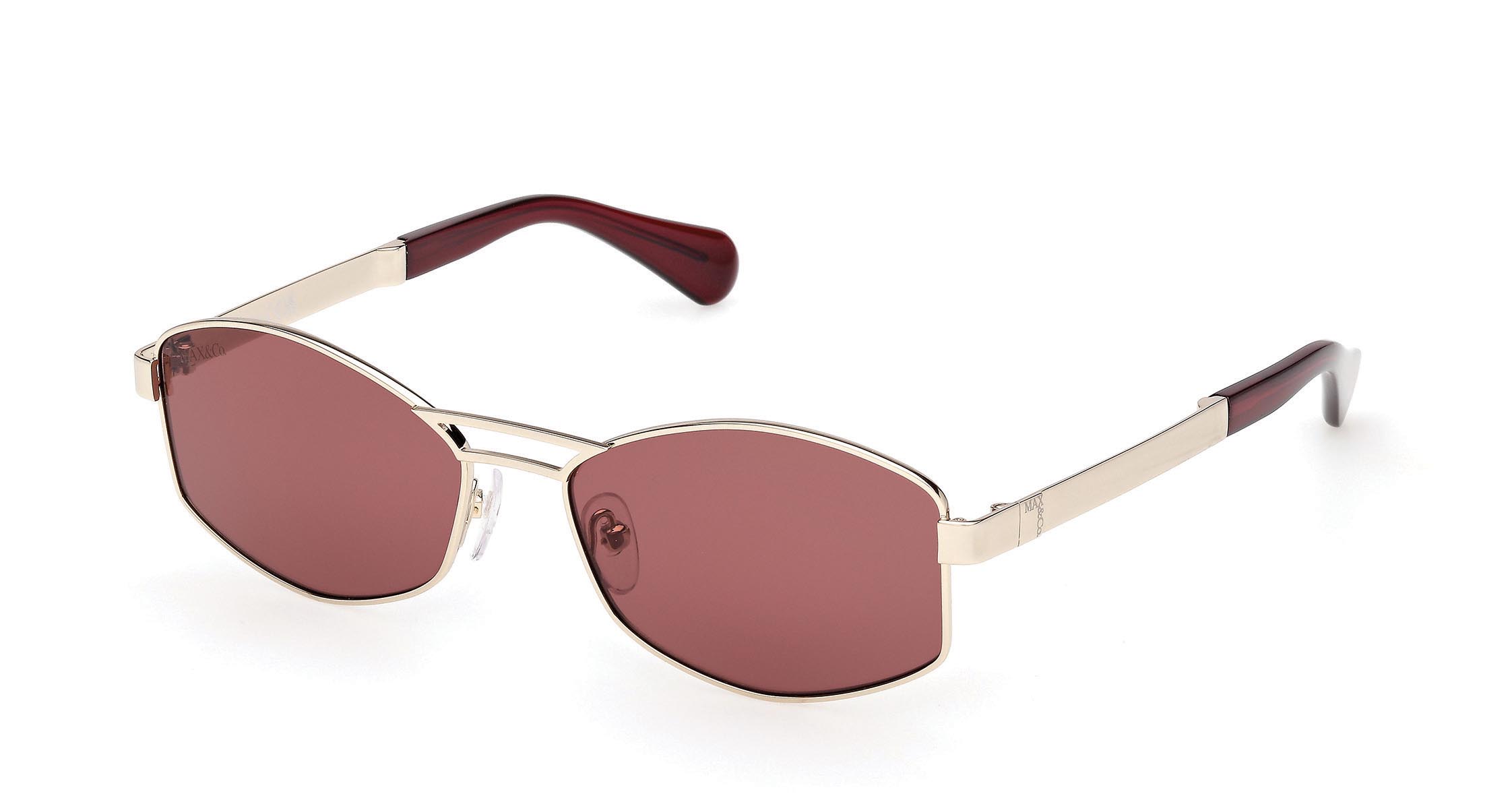Modello da sole dal design dinamico, con un elegante doppio ponte curvo che si armonizza alle geometrie fluide della montatura in metallo. Le aste sottili sono caratterizzate da confortevoli terminali in acetato.