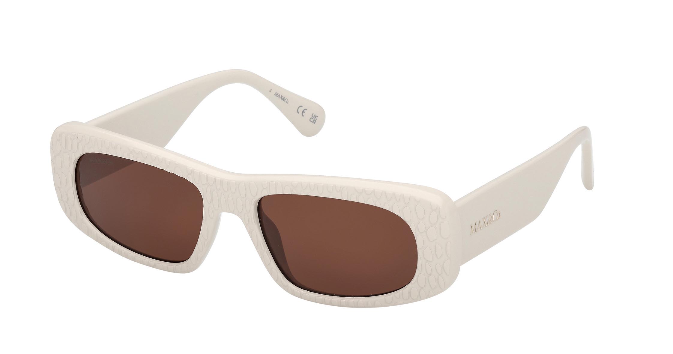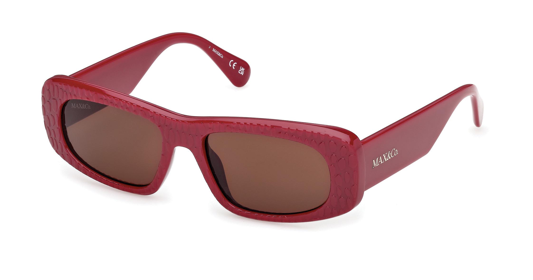 Occhiali da sole dal look contemporaneo e audace, con nuove aste dai profili bold, firmate dal distintivo logo MAX&Co. Il frontale rettangolare è caratterizzato da una nuova texture che regala un’esperienza tattile a chi indossa la montatura.