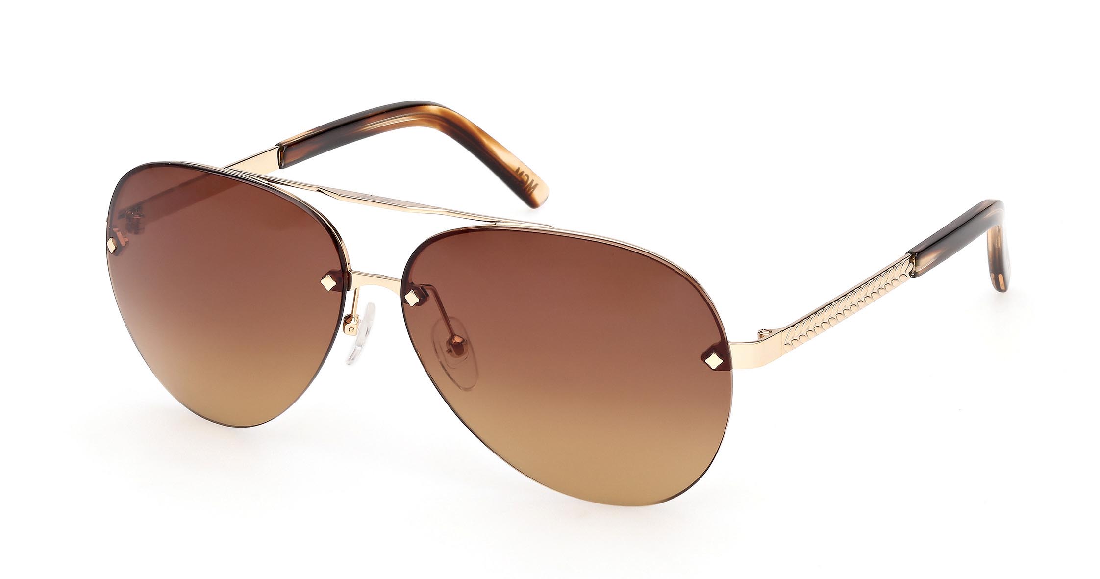 Montatura in metallo con silhouette pilot dal design elegante e senza tempo. Gli elementi iconici della Maison compaiono sulle lenti come inserti a forma di diamante che si integrano nella struttura. Il motivo dell’alloro impreziosisce le aste con una raffinata incisione esterna.
